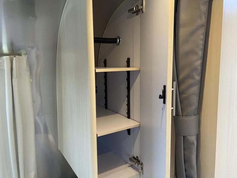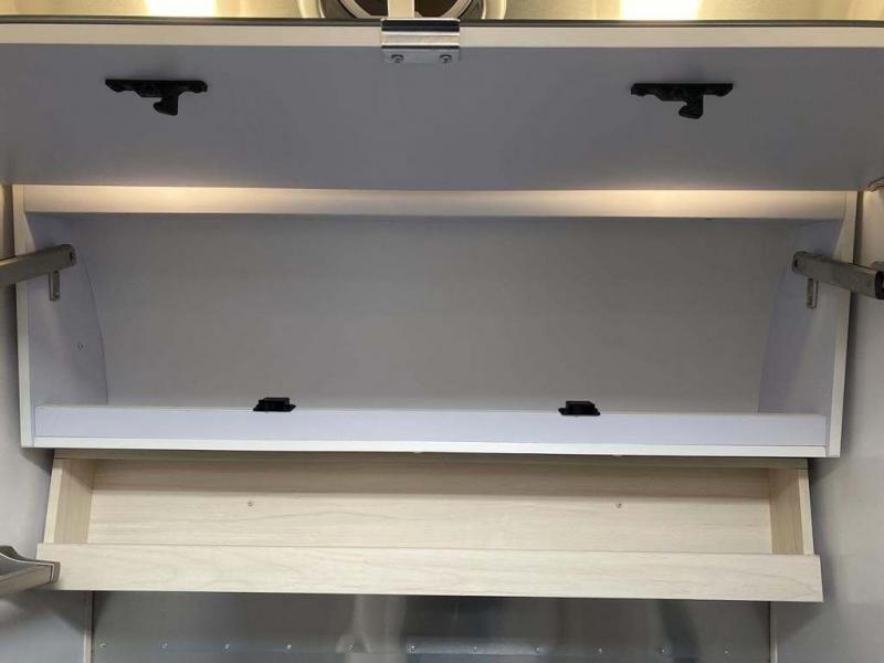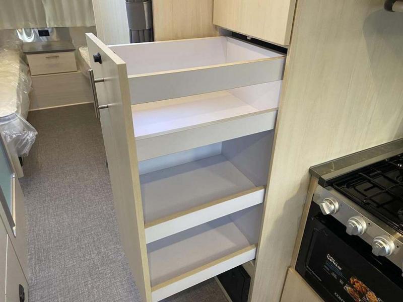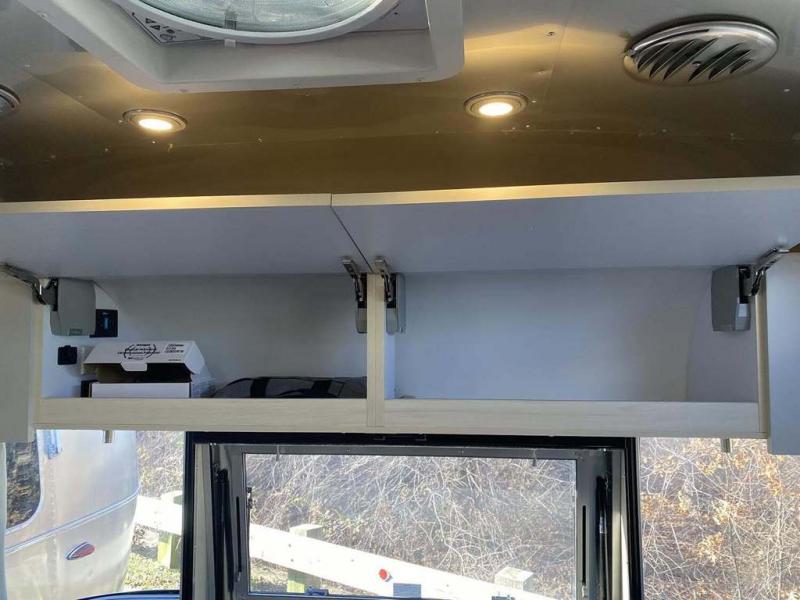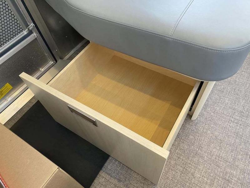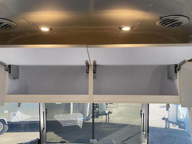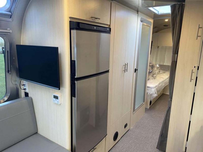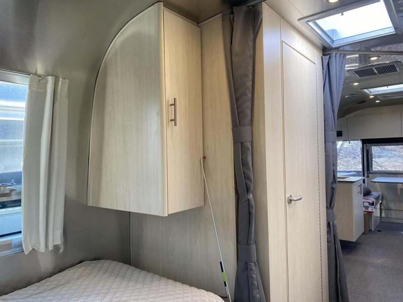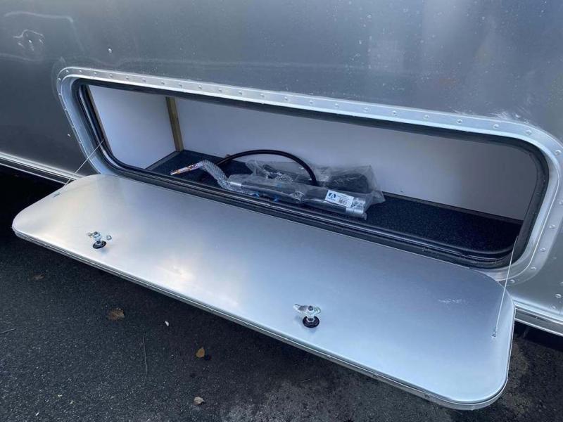 With each Flying Cloud travel trailer by Airstream, there are two axles, and each is built for ease of towing, plus there is a rear-view camera to make reversing and parking easier, and stainless steel front stone guards to protect the lower segments from road debris. The iconic Airstream design is created outside and inside by the semi-monocoque aluminum superstructure, the temperature reducing one-piece white aluminum roof, the panoramic front windows, and the stylish aluminum wheels. The interior will have you feeling right at home with handcrafted cabinetry, plenty of storage and counter space, sleek roller blinds and blackout curtains, plus residential style faucets!