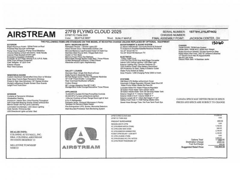 | Interior Color | Seattle Mist/Sunlit Maple |