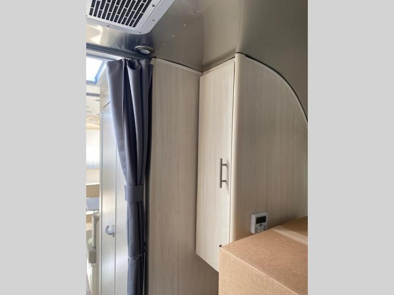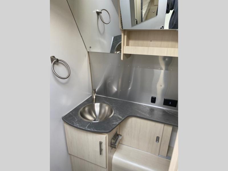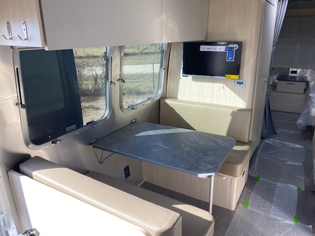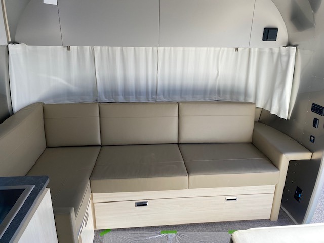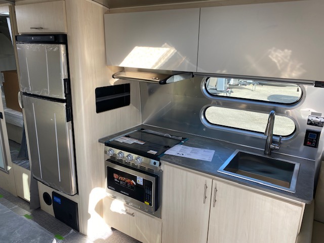 With each Flying Cloud travel trailer by Airstream, there are two axles, and each is built for ease of towing, plus there is a rear-view camera to make reversing and parking easier, and stainless steel front stone guards to protect the lower segments from road debris. The iconic Airstream design is created outside and inside by the semi-monocoque aluminum superstructure, the temperature reducing one-piece white aluminum roof, the panoramic front windows, and the stylish aluminum wheels. The interior will have you feeling right at home with handcrafted cabinetry, plenty of storage and counter space, sleek roller blinds and blackout curtains, plus residential style faucets!