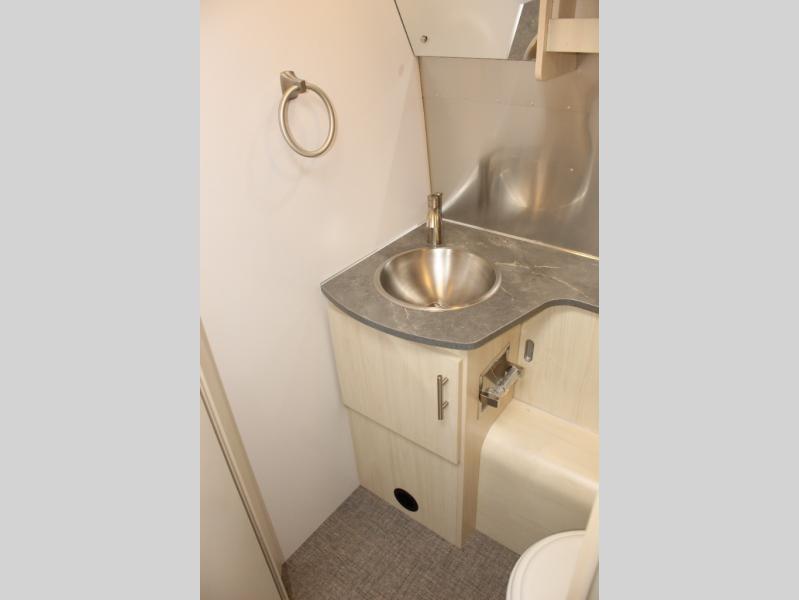 The Flying Cloud includes a thoughtfully designed bathroom with a shower, toilet, and sink. Enjoy the convenience and privacy of having your own bathroom while on the road, making your travels as comfortable as possible.