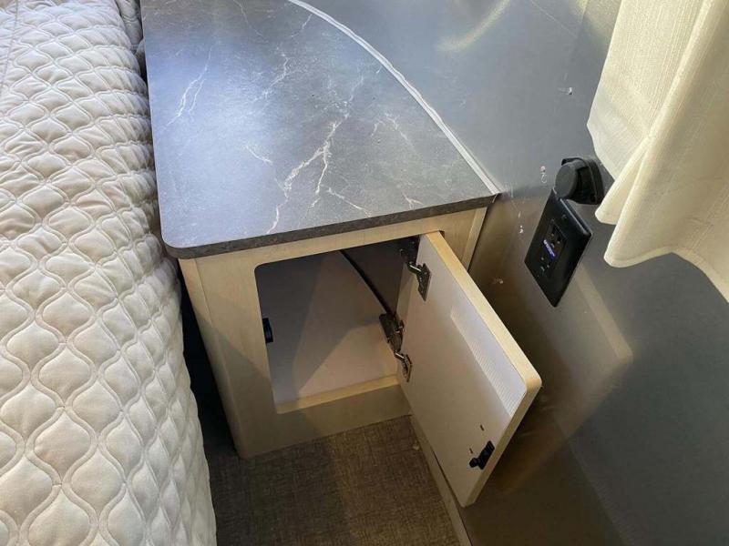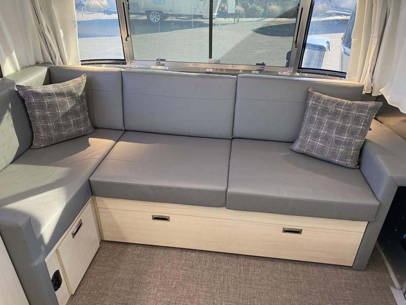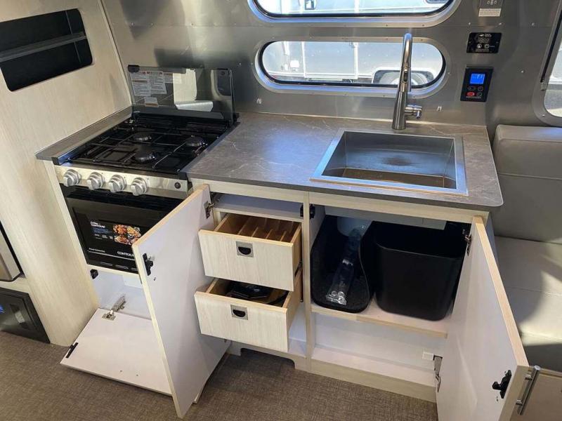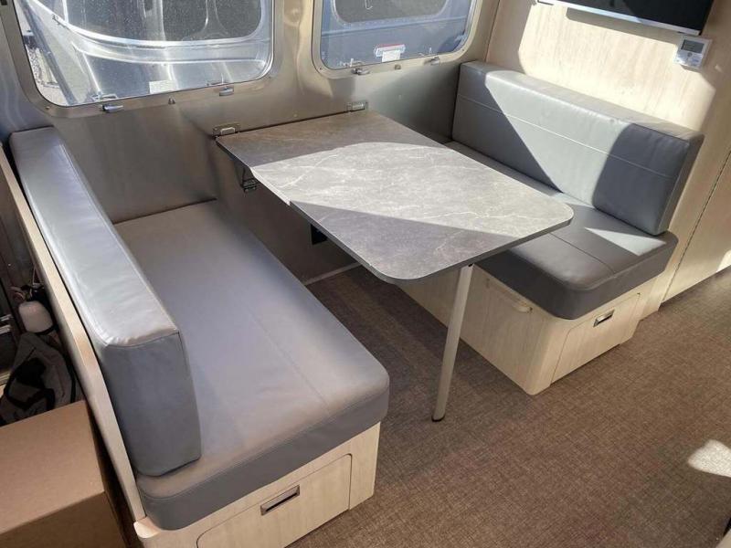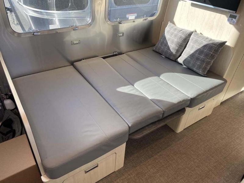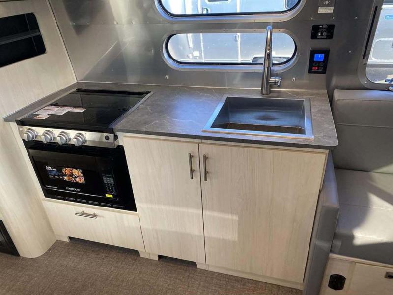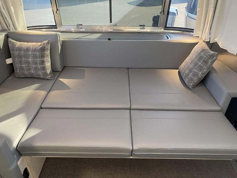 The family-friendly and popular Flying Cloud travel trailers by Airstream are built for ease of towing with a rear-view camera to make reversing and parking easier and stainless steel front stone guards to protect the lower segments from road debris. The iconic Airstream design is created outside and inside by the semi-monocoque aluminum superstructure, the temperature reducing one-piece white aluminum roof, the panoramic front windows, and the stylish aluminum wheels. The interior will have you feeling right at home with handcrafted cabinetry, plenty of storage and counter space, sleek roller blinds and blackout curtains, plus residential style faucets!