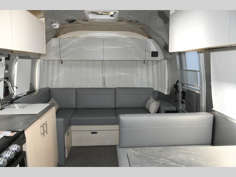 Every Flying Cloud travel trailer is built with Airstream’s legendary semi-monocoque aluminum superstructure for strength, durability, and long-term value. The temperature-reducing one-piece white aluminum roof, stainless steel front stone guards, and stylish aluminum wheels ensure this trailer looks as good as it performs. Panoramic windows flood the interior with natural light, while handcrafted cabinetry, sleek roller blinds, blackout curtains, and residential-style faucets create a warm, upscale feel throughout.