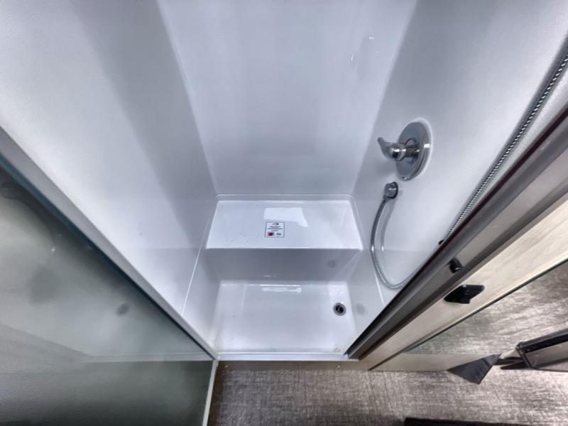 Travel with your family and friends to see new places and experience how comfortable camping can be in this trailer! Whether you are dining at the booth dinette that seats four or relaxing up front on the L-shaped sofa, you can visit while watching the TV or talking with the cook in the galley kitchen. The split bathroom offers a toilet and vanity along one side and a shower with its own door on the other next to a closet for hanging clothes. The rear bedroom with two twin beds will provide you with your own space at night!