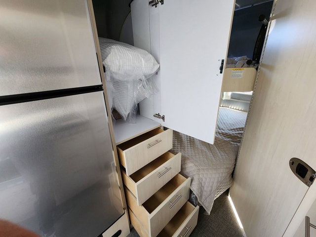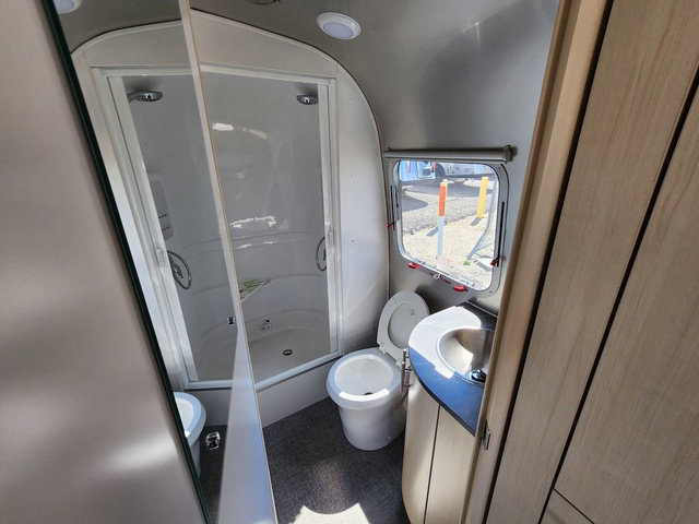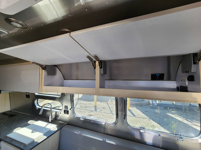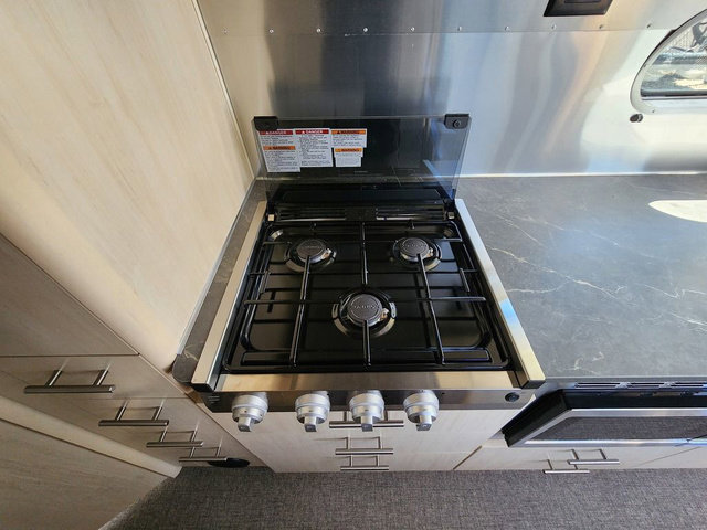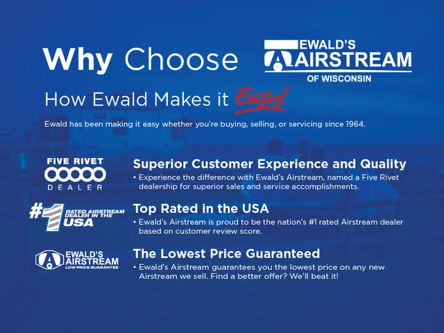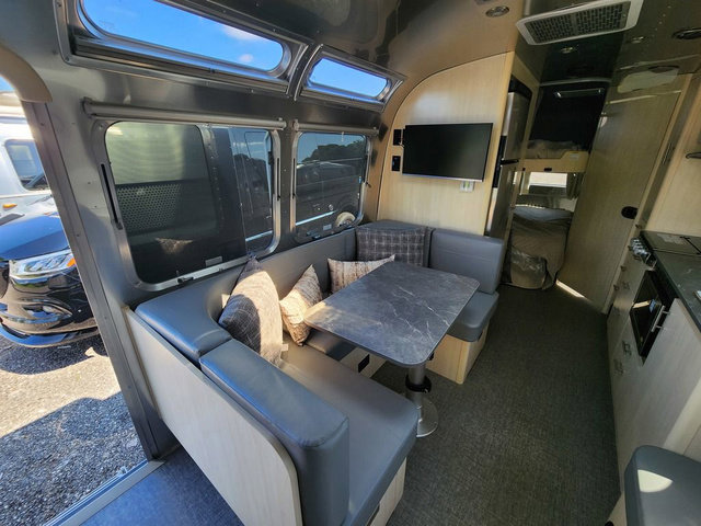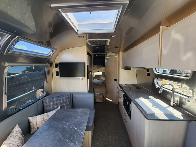 The family-friendly and popular Flying Cloud travel trailers by Airstream are built for ease of towing with a rear-view camera to make reversing and parking easier and stainless steel front stone guards to protect the lower segments from road debris. The iconic Airstream design is created outside and inside by the semi-monocoque aluminum superstructure, the temperature reducing one-piece white aluminum roof, the panoramic front windows, and the stylish aluminum wheels. The interior will have you feeling right at home with handcrafted cabinetry, plenty of storage and counter space, sleek roller blinds and blackout curtains, plus residential style faucets!