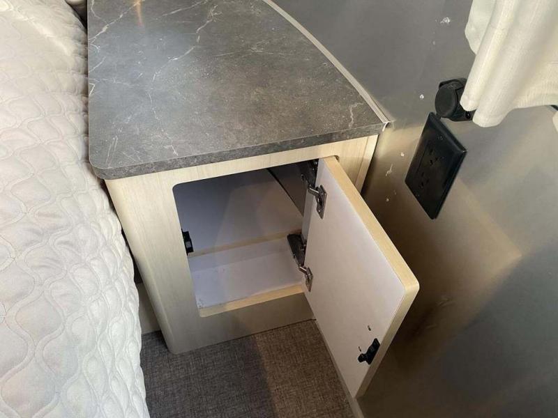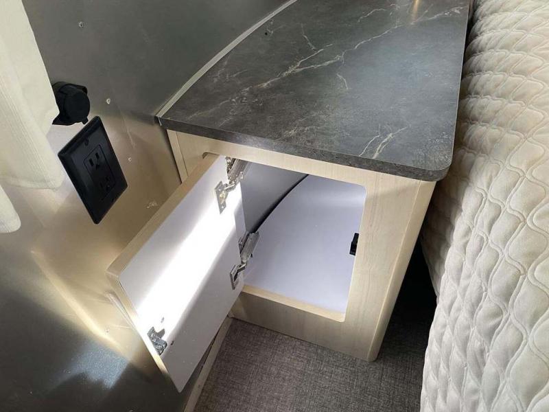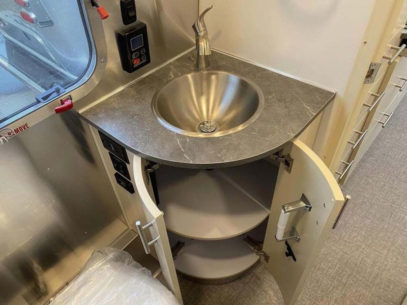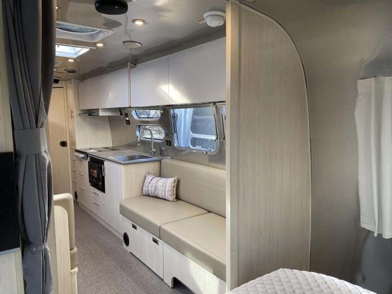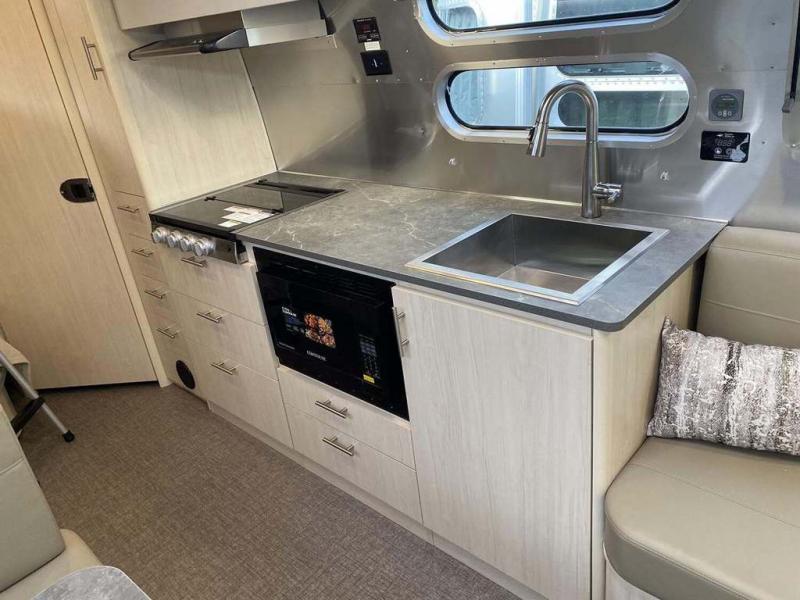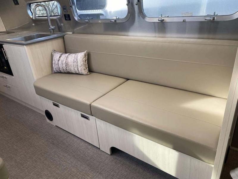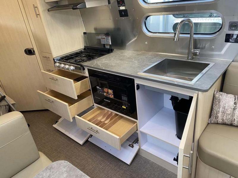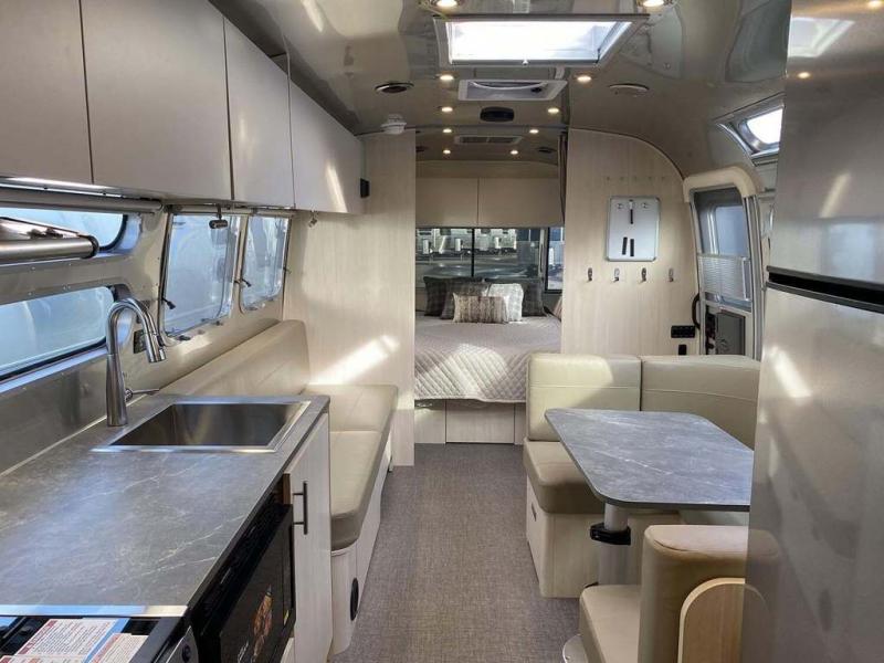 The family-friendly and popular Flying Cloud travel trailers by Airstream are built for ease of towing with a rear-view camera to make reversing and parking easier and stainless steel front stone guards to protect the lower segments from road debris. The iconic Airstream design is created outside and inside by the semi-monocoque aluminum superstructure, the temperature reducing one-piece white aluminum roof, the panoramic front windows, and the stylish aluminum wheels. The interior will have you feeling right at home with handcrafted cabinetry, plenty of storage and counter space, sleek roller blinds and blackout curtains, plus residential style faucets!