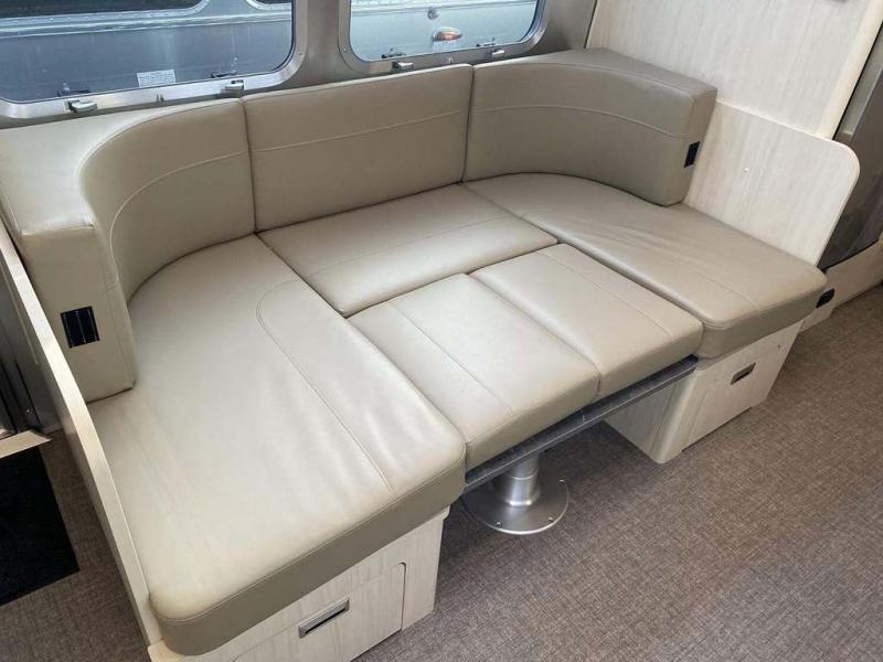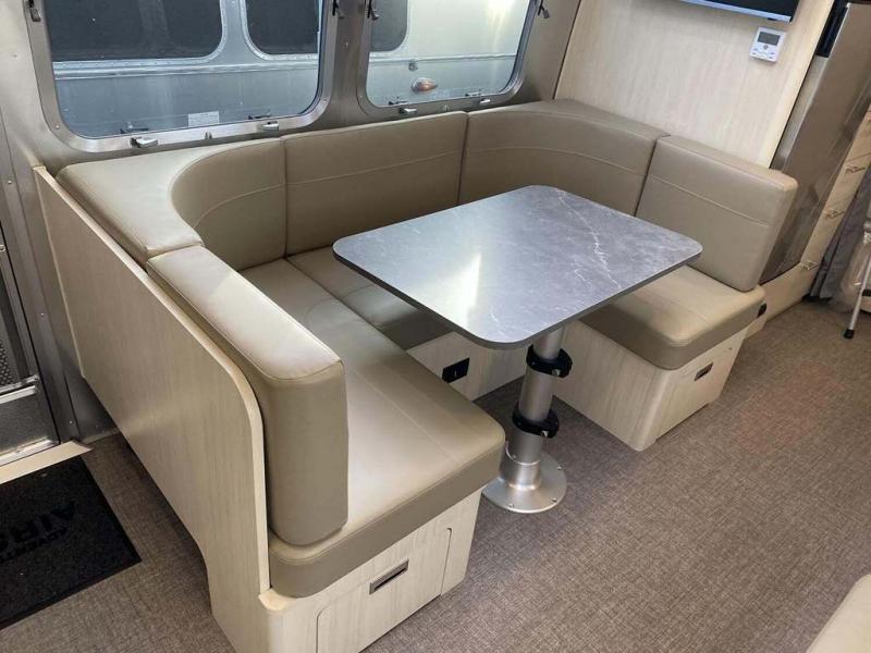 Looking for maximum interior space, a place for eight to sleep at night, plus plenty of storage for your big group? This trailer offers all of that plus so much more! The front private bedroom offers a queen bed with storage on each side to keep your clothing wrinkle free. The main living and kitchen area offers a U-shaped dinette for total comfort when dining, playing games and visiting with everyone. And the sofa offers more relaxation seating, while both furnishings provide extra sleeping space. The rear corner bunks offer a twin above a queen mattress that are designed to fit the curves of the Airstream perfectly. The full bathroom will keep you refreshed, and the kitchen is loaded with everything you need to feed the group. This model is also available with optional twin beds which replace the front queen bed!