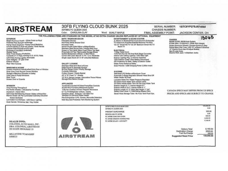 | Interior Color | Carolina Clay/Sunlit Maple |