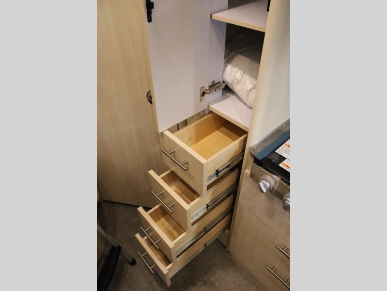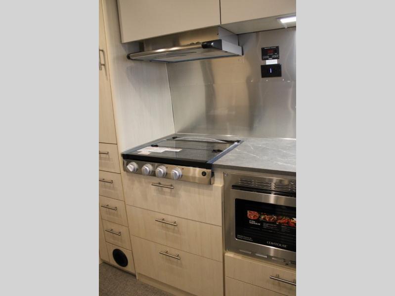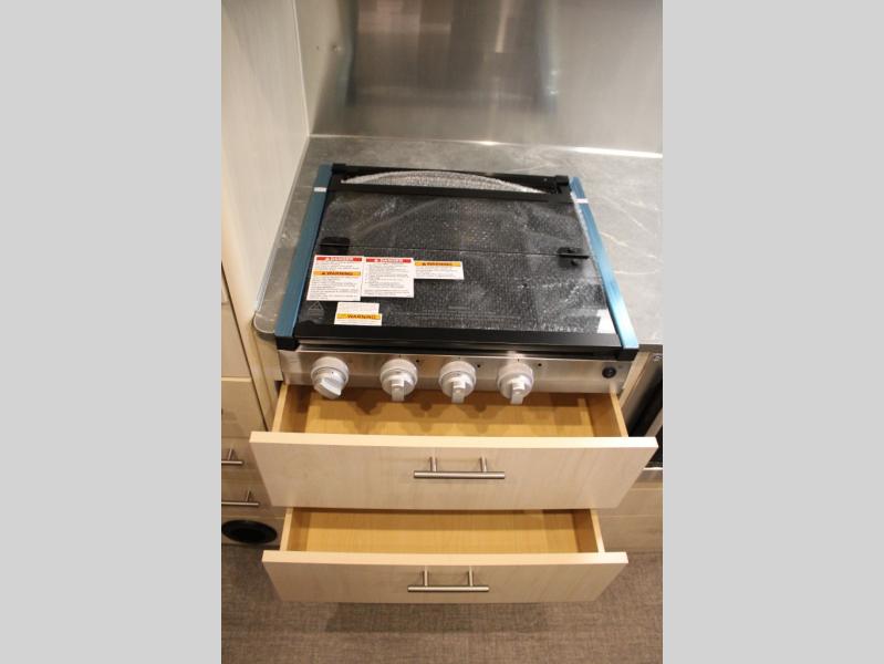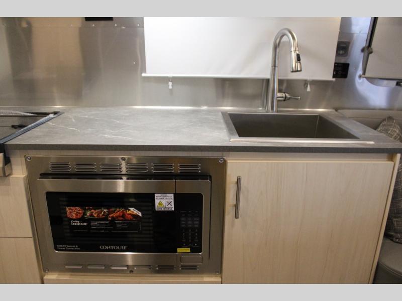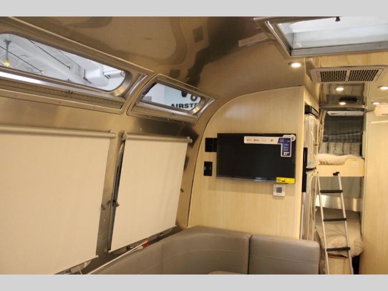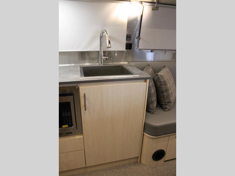 The family-friendly and popular Flying Cloud travel trailers by Airstream are built for ease of towing with a rear-view camera to make reversing and parking easier and stainless steel front stone guards to protect the lower segments from road debris. The iconic Airstream design is created outside and inside by the semi-monocoque aluminum superstructure, the temperature reducing one-piece white aluminum roof, the panoramic front windows, and the stylish aluminum wheels. The interior will have you feeling right at home with handcrafted cabinetry, plenty of storage and counter space, sleek roller blinds and blackout curtains, plus residential style faucets!