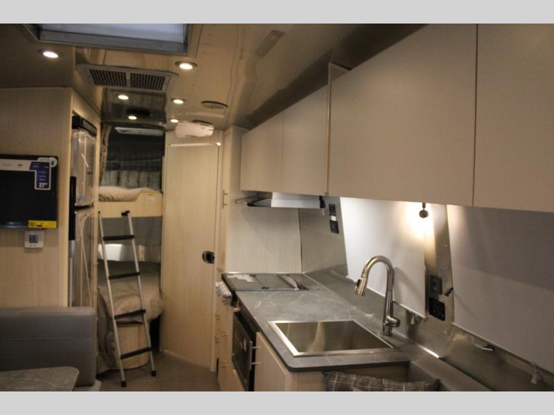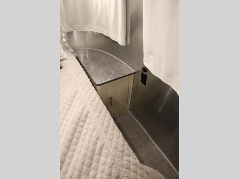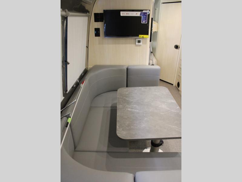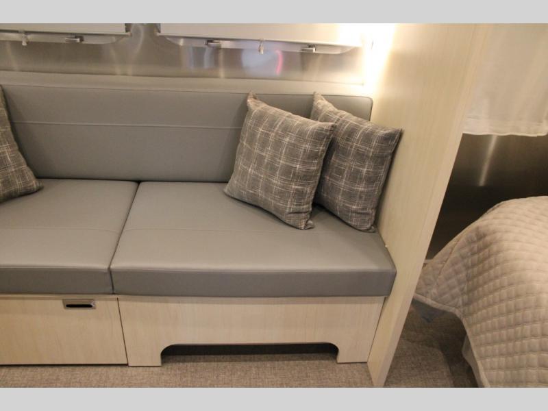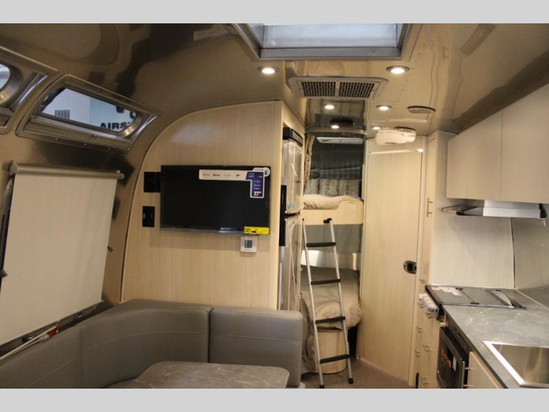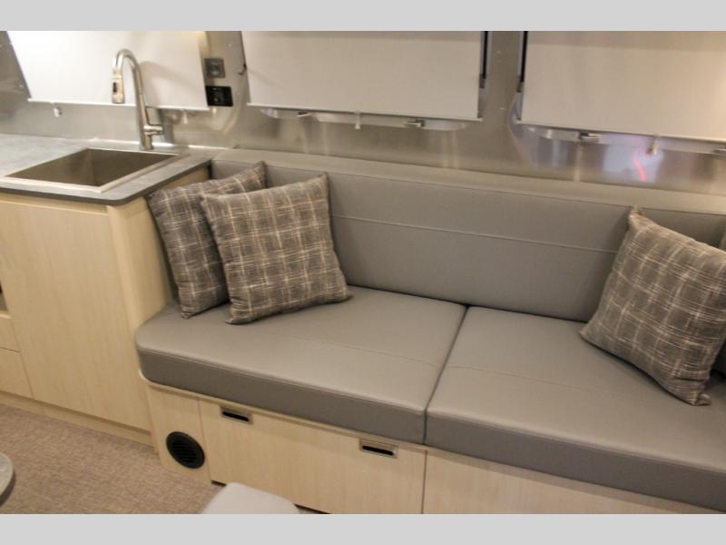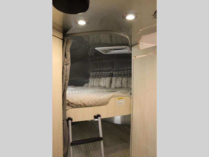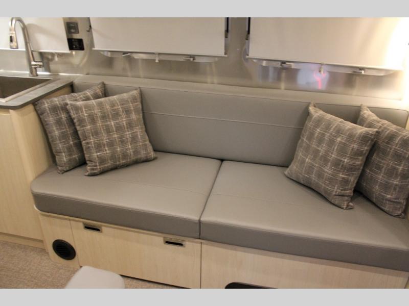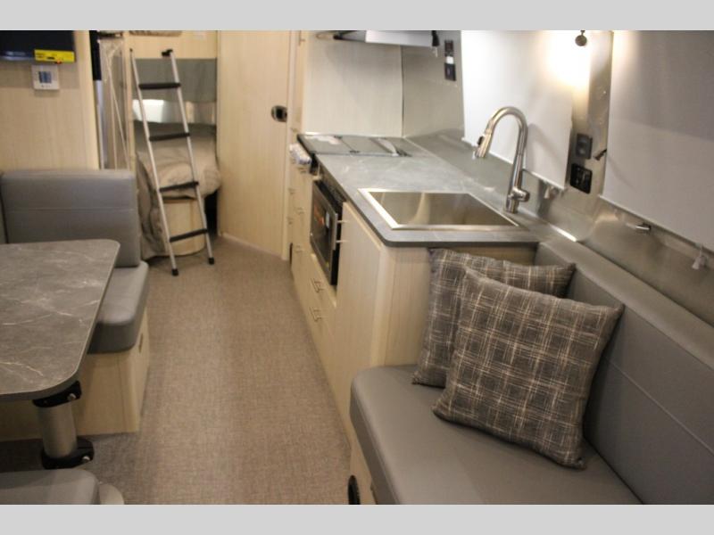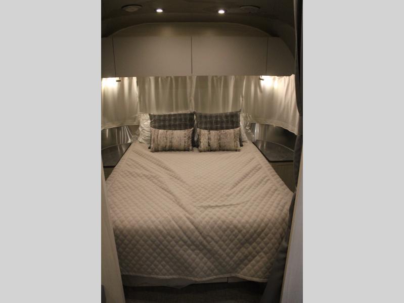 Looking for maximum interior space, a place for eight to sleep at night, plus plenty of storage for your big group? This trailer offers all of that plus so much more! The front private bedroom offers a queen bed with storage on each side to keep your clothing wrinkle free. The main living and kitchen area offers a U-shaped dinette for total comfort when dining, playing games and visiting with everyone. And the sofa offers more relaxation seating, while both furnishings provide extra sleeping space. The rear corner bunks offer a twin above a queen mattress that are designed to fit the curves of the Airstream perfectly. The full bathroom will keep you refreshed, and the kitchen is loaded with everything you need to feed the group. This model is also available with optional twin beds which replace the front queen bed!