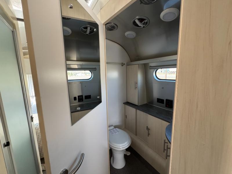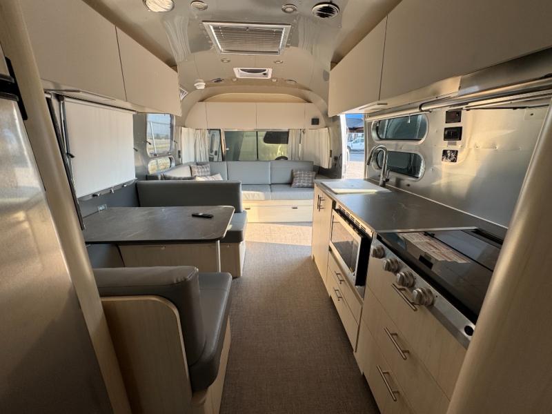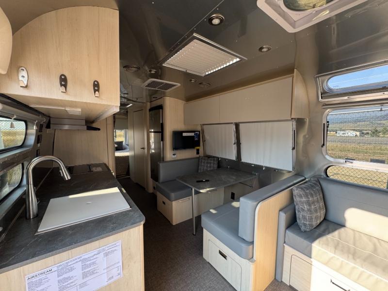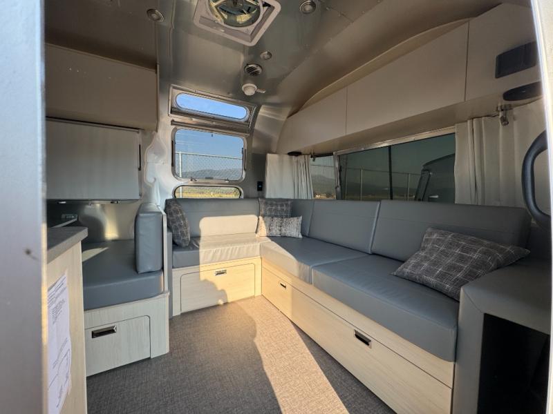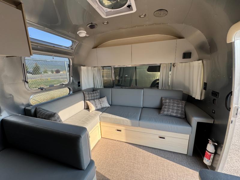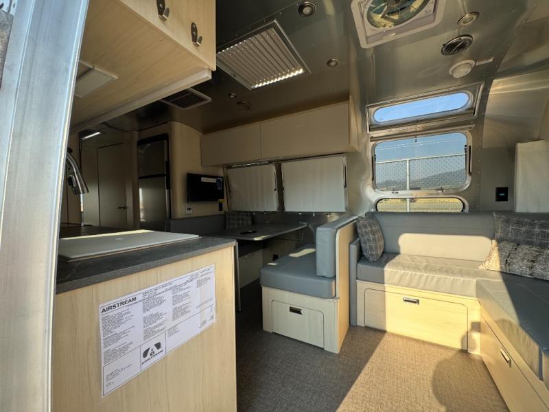 The family-friendly and popular Flying Cloud travel trailers by Airstream are built for ease of towing with a rear-view camera to make reversing and parking easier and stainless steel front stone guards to protect the lower segments from road debris. The iconic Airstream design is created outside and inside by the semi-monocoque aluminum superstructure, the temperature reducing one-piece white aluminum roof, the panoramic front windows, and the stylish aluminum wheels. The interior will have you feeling right at home with handcrafted cabinetry, plenty of storage and counter space, sleek roller blinds and blackout curtains, plus residential style faucets!