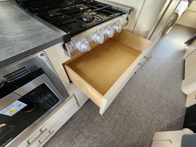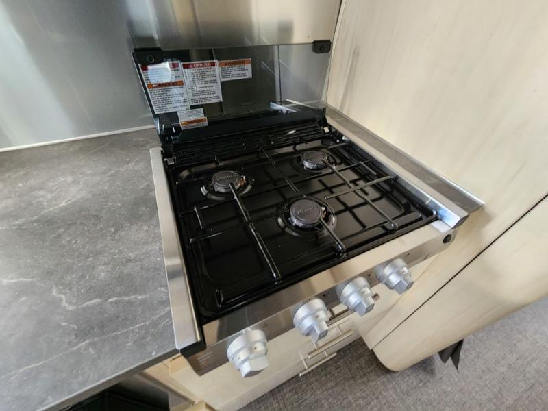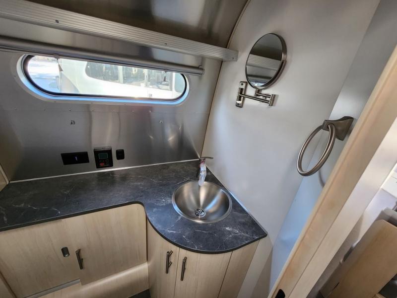 The family-friendly and popular Flying Cloud travel trailers by Airstream are built for ease of towing with a rear-view camera to make reversing and parking easier and stainless steel front stone guards to protect the lower segments from road debris. The iconic Airstream design is created outside and inside by the semi-monocoque aluminum superstructure, the temperature reducing one-piece white aluminum roof, the panoramic front windows, and the stylish aluminum wheels. The interior will have you feeling right at home with handcrafted cabinetry, plenty of storage and counter space, sleek roller blinds and blackout curtains, plus residential style faucets!
