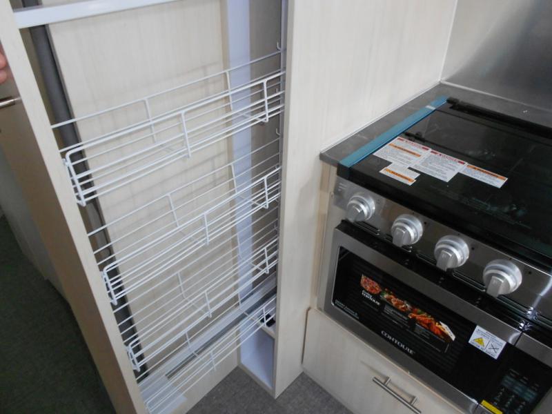 Enjoy a home away from home with this travel trailer! The L-shaped lounge provides a comfortable place to enjoy a meal, play a card game, and even transform into an extra sleeping space for a guest or two smaller guests. The ultra-modern kitchen has a stainless steel three burner cooktop, a Baraldi vent, a 6.8 cu. ft. 12V refrigerator, and a deep stainless steel Moen sink to make clean up easier. The bright white DuPont Corian countertops help light bounce off of the aluminum walls making for a brighter atmosphere and they also have built-in multifunctional storage bins that are flush with the surface behind the sink. Up front there is a queen bed with an AdaptaFlex memory foam mattress for you to enjoy a good night's rest or you can chose the optional twin beds, depending on your needs. The separated bathroom allows one person to freshen up in the shower with a seat while another uses the private toilet and vanity!