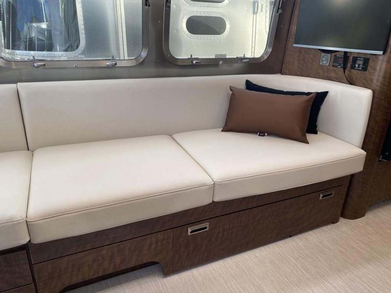 Each one of these Airstream Globetrotter travel trailers are built to last a lifetime with a structural frame and durable fabrics! European inspired and American made with a minimalist design that includes crisp, clean lines and delicate neutral colors for a sophisticated beauty with soft curves, panoramic windows, wrap-around upholstery, and backlighting. The HITCH seating upholstery has a fine woven texture, a subtle metallic tip print, and a distinctive two-tone feel, as well as durable and stain-resistant. You won't have to go far when charging your electronics thanks to the strategically placed USB and 110V outlets throughout. The QuietStream ducted A/C system can quickly cool the inside and also has a heat pump to pull ambient heat from the air. Come choose your favorite model today!