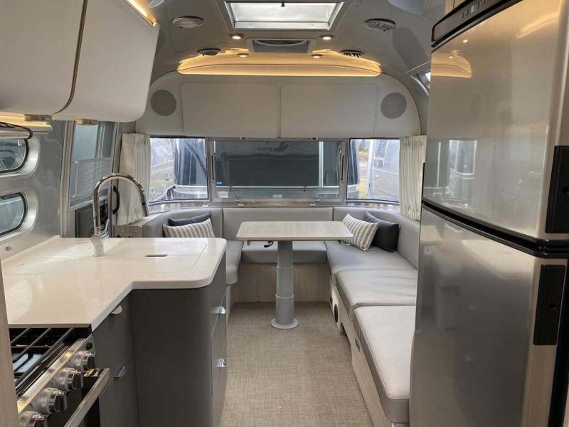 Each one of these Airstream Globetrotter travel trailers are built to last a lifetime with a structural frame and durable fabrics! European inspired and American made with a minimalist design that includes crisp, clean lines and delicate neutral colors for a sophisticated beauty with soft curves, panoramic windows, wrap-around upholstery, and backlighting. The HITCH seating upholstery has a fine woven texture, a subtle metallic tip print, and a distinctive two-tone feel, as well as durable and stain-resistant. You won't have to go far when charging your electronics thanks to the strategically placed USB and 110V outlets throughout. The QuietStream ducted A/C system can quickly cool the inside and also has a heat pump to pull ambient heat from the air. Come choose your favorite model today!