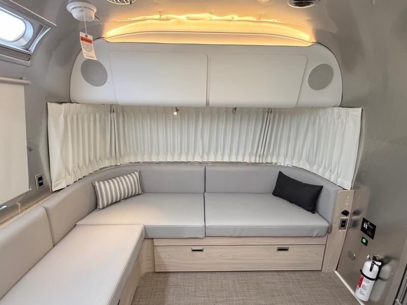 Each one of these Airstream Globetrotter travel trailers are built to last a lifetime with a structural frame and durable fabrics! European inspired and American made with a minimalist design that includes crisp, clean lines and delicate neutral colors for a sophisticated beauty with soft curves, panoramic windows, wrap-around upholstery, and backlighting. The HITCH seating upholstery has a fine woven texture, a subtle metallic tip print, and a distinctive two-tone feel, as well as durable and stain-resistant. You won't have to go far when charging your electronics thanks to the strategically placed USB and 110V outlets throughout. The QuietStream ducted A/C system can quickly cool the inside and also has a heat pump to pull ambient heat from the air. Come choose your favorite model today!
