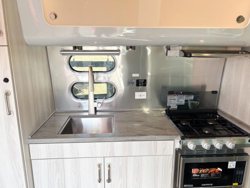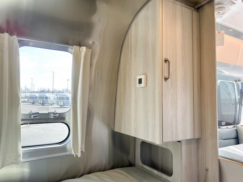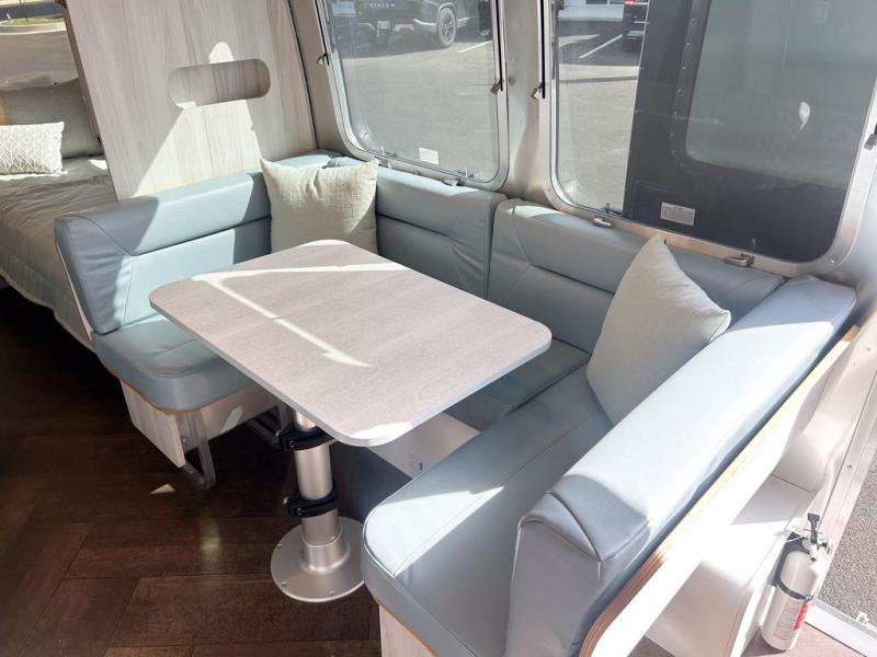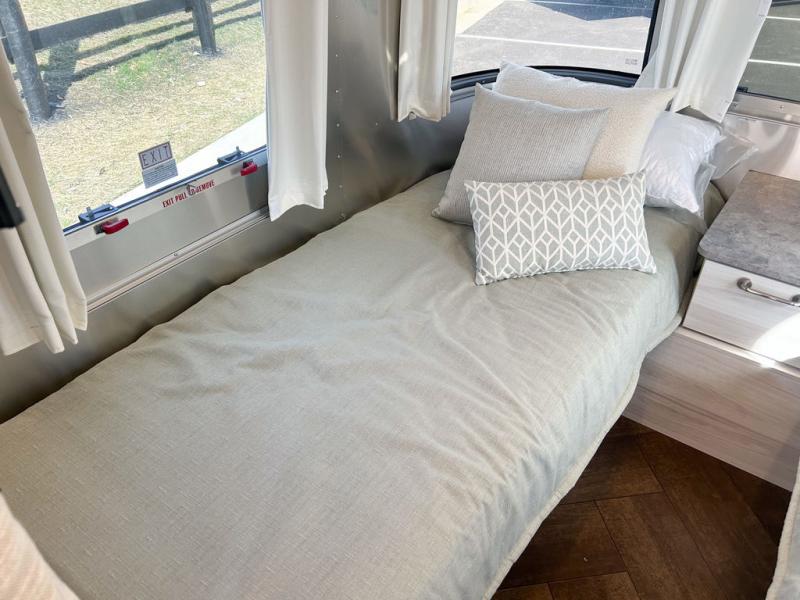 Every time you step foot into the Airstream International travel trailer, you will feel as if you are breathing in a breath of fresh air! The fresh coastal décor was inspired by the waterfront, and the stylish interior delivers a relaxing environment and comfortable luxury. The panoramic windows increase the amount of natural sunlight that streams through to the interior, but they also have blackout shades that you can close whenever you need a darkened room. The beautiful handcrafted marine-grade Lite-Ply laminated cabinetry is an attractive base for the overhead storage lockers that have sliding doors and LED lighting. The dimmable interior LED lighting will create the perfect amount of illumination for you as you spend time indoors. The exterior has excellent features as well with its enclosed aluminum insulated heated underbelly, unique front door key with heavy-duty deadbolt, optional solar package, solar front window protection, and exterior shower with hot and cold water.