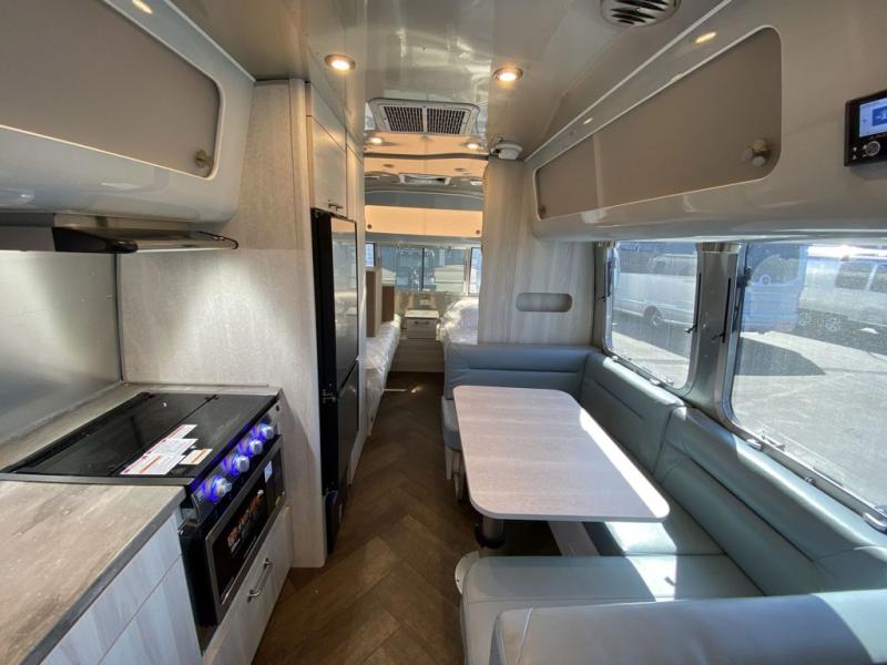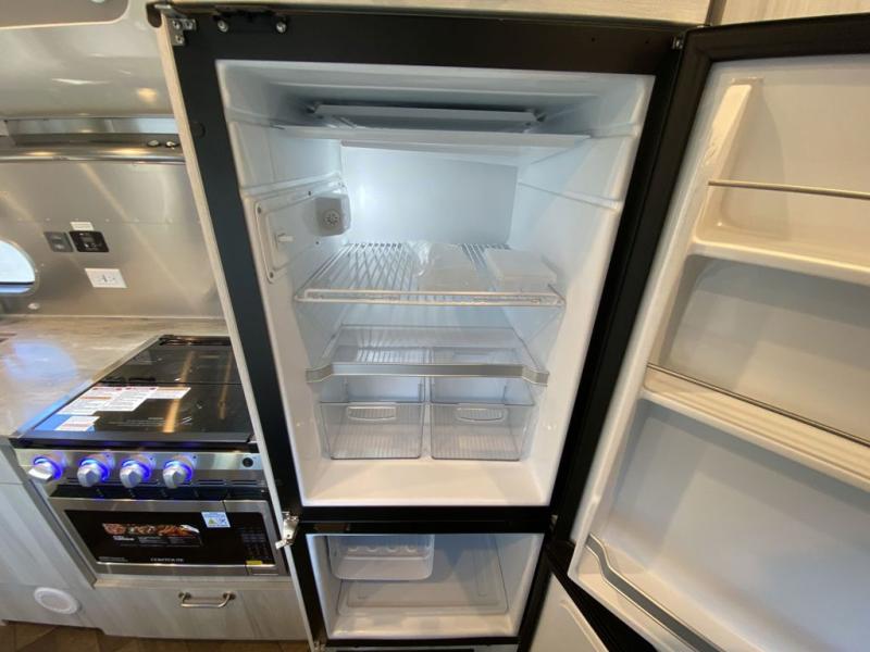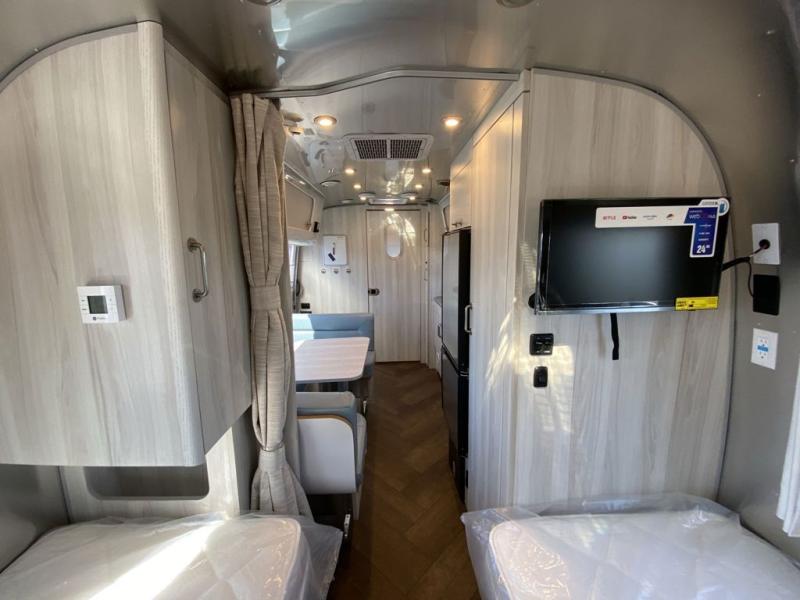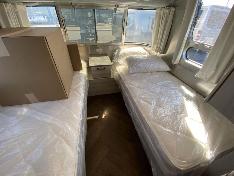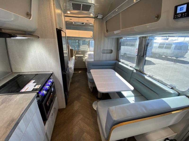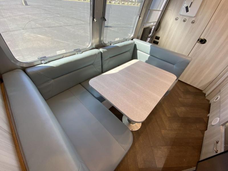 Every time you step foot into the Airstream International travel trailer, you will feel as if you are breathing in a breath of fresh air! The fresh coastal décor was inspired by the waterfront, and the stylish interior delivers a relaxing environment and comfortable luxury. The panoramic windows increase the amount of natural sunlight that streams through to the interior, but they also have blackout shades that you can close whenever you need a darkened room. The beautiful handcrafted marine-grade Lite-Ply laminated cabinetry is an attractive base for the overhead storage lockers that have sliding doors and LED lighting. The dimmable interior LED lighting will create the perfect amount of illumination for you as you spend time indoors. The exterior has excellent features as well with its enclosed aluminum insulated heated underbelly, unique front door key with heavy-duty deadbolt, optional solar package, solar front window protection, and exterior shower with hot and cold water.