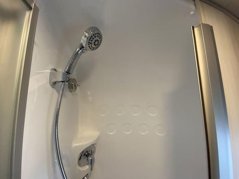 What kind of an adventurer are you? Are you the kind that enjoys having modern features and a calming environment? If you are, you absolutely must check out this International travel trailer! You will love having your own little sanctuary to retreat to while you are away. The front twin beds will be THE place to spend your mornings because you can prop yourself up against the sleeping pillows and decorative throw pillows while you sip on a hot cup of coffee and admire the amazing views coming through the surrounding panoramic windows. There is also a 24" 12V DC Smart TV included in this area so you can catch up on the news. The wardrobe with a hanging bar will ensure that your clothes stay wrinkle free, and you can also use the retractable clothes line in the spacious shower to let some clothes air dry.
