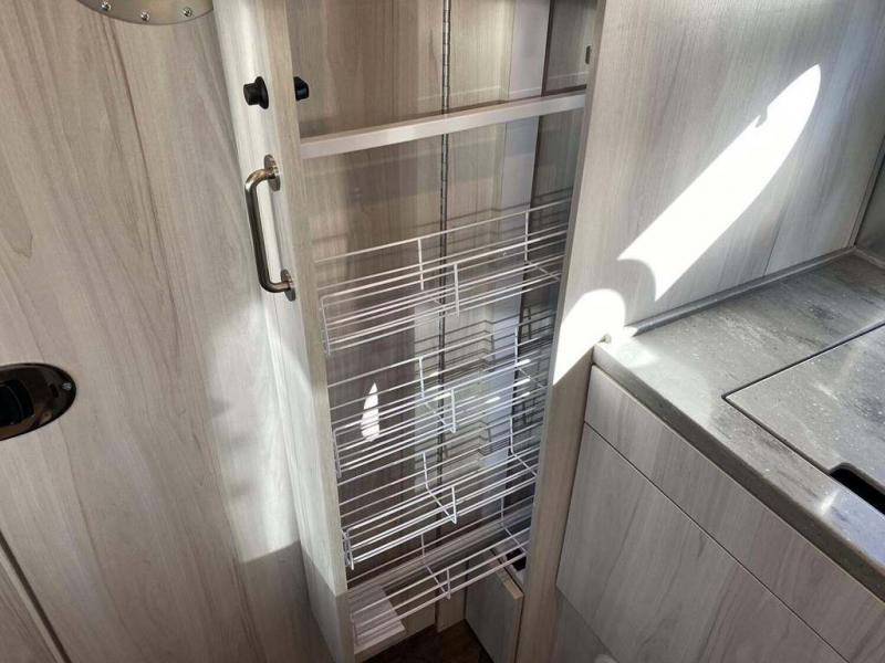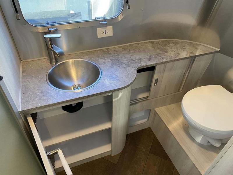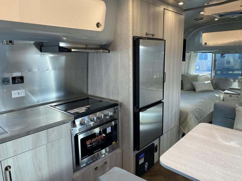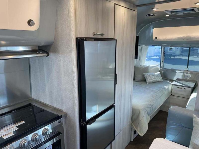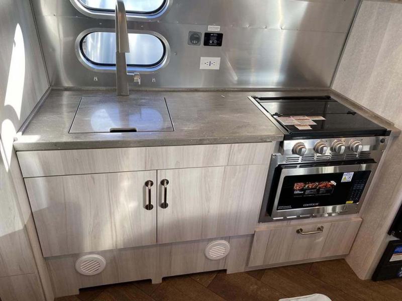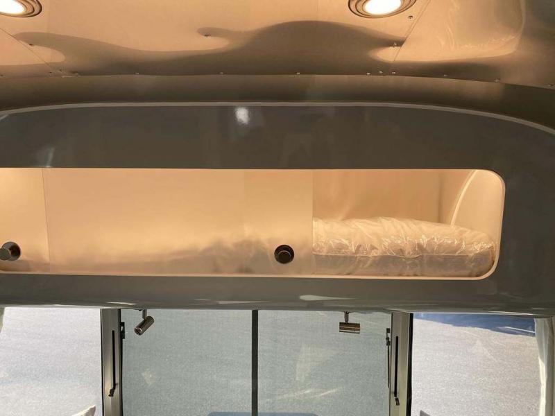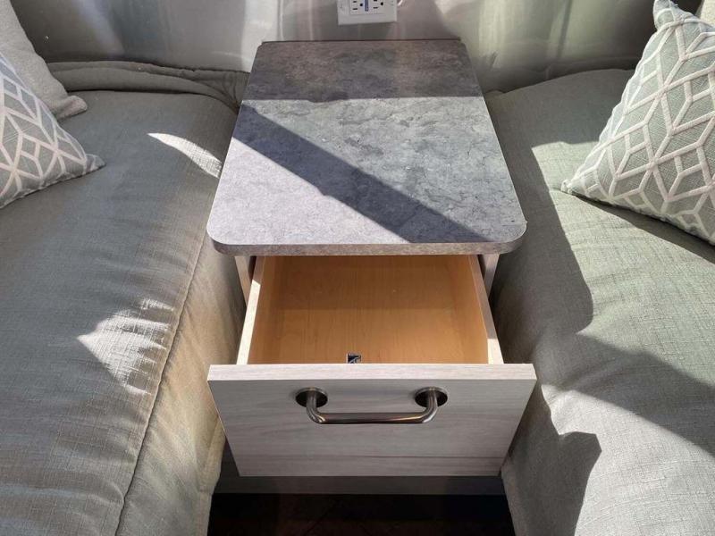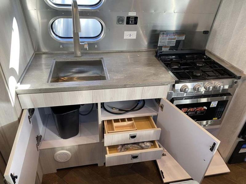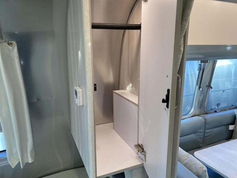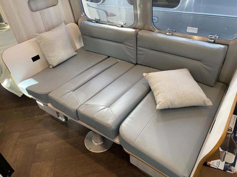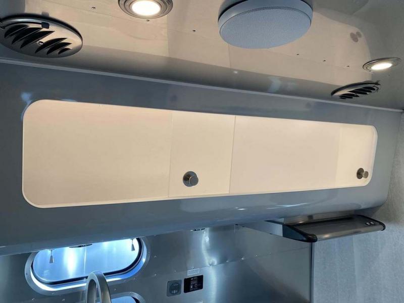 Every time you step foot into the Airstream International travel trailer, you will feel as if you are breathing in a breath of fresh air! The fresh coastal décor was inspired by the waterfront, and the stylish interior delivers a relaxing environment and comfortable luxury. The panoramic windows increase the amount of natural sunlight that streams through to the interior, but they also have blackout shades that you can close whenever you need a darkened room. The beautiful handcrafted marine-grade Lite-Ply laminated cabinetry is an attractive base for the overhead storage lockers that have sliding doors and LED lighting. The dimmable interior LED lighting will create the perfect amount of illumination for you as you spend time indoors. The exterior has excellent features as well with its enclosed aluminum insulated heated underbelly, unique front door key with heavy-duty deadbolt, optional solar package, solar front window protection, and exterior shower with hot and cold water.