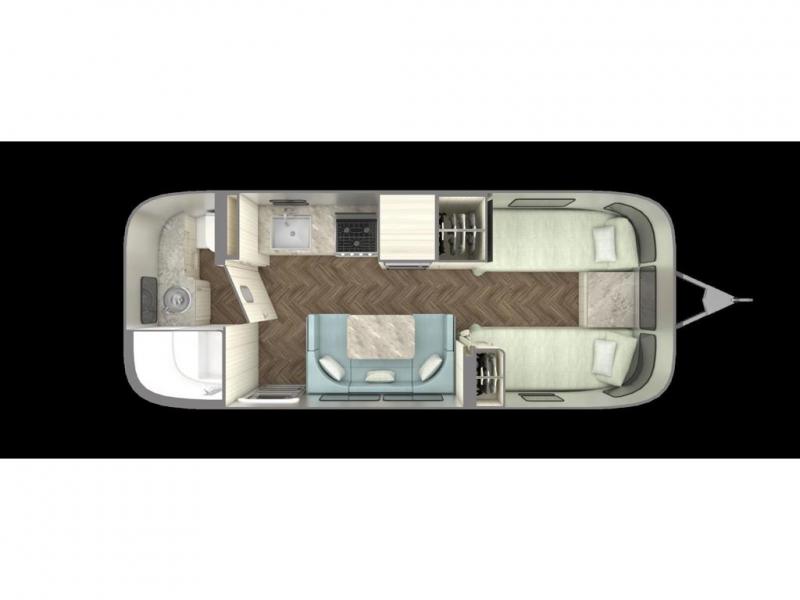 Airstream International travel trailer 23FB Twin highlights: