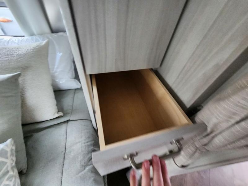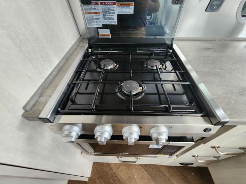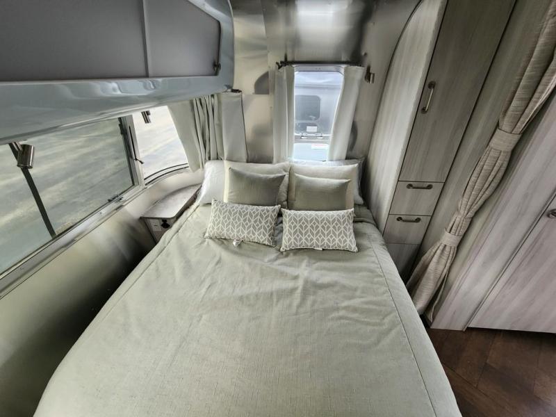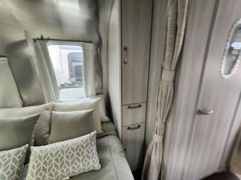 Every time you step foot into the Airstream International travel trailer, you will feel as if you are breathing in a breath of fresh air! The fresh coastal décor was inspired by the waterfront, and the stylish interior delivers a relaxing environment and comfortable luxury. The panoramic windows increase the amount of natural sunlight that streams through to the interior, but they also have blackout shades that you can close whenever you need a darkened room. The beautiful handcrafted marine-grade Lite-Ply laminated cabinetry is an attractive base for the overhead storage lockers that have sliding doors and LED lighting. The dimmable interior LED lighting will create the perfect amount of illumination for you as you spend time indoors. The exterior has excellent features as well with its enclosed aluminum insulated heated underbelly, unique front door key with heavy-duty deadbolt, optional solar package, solar front window protection, and exterior shower with hot and cold water.