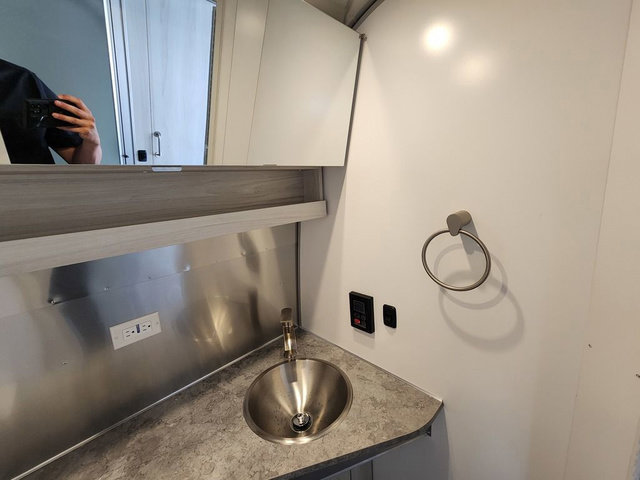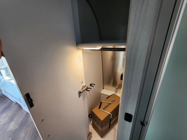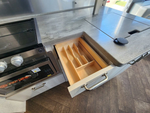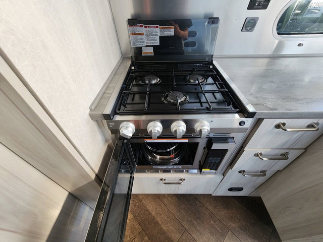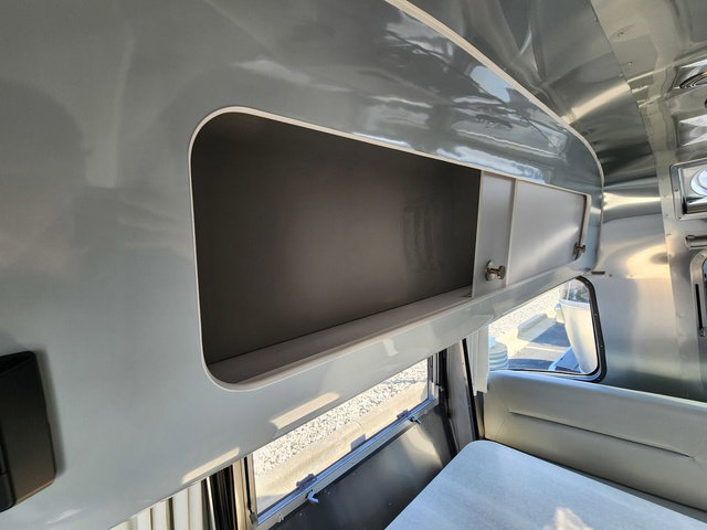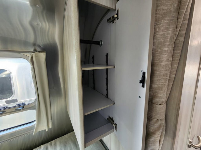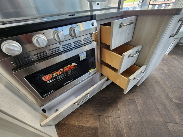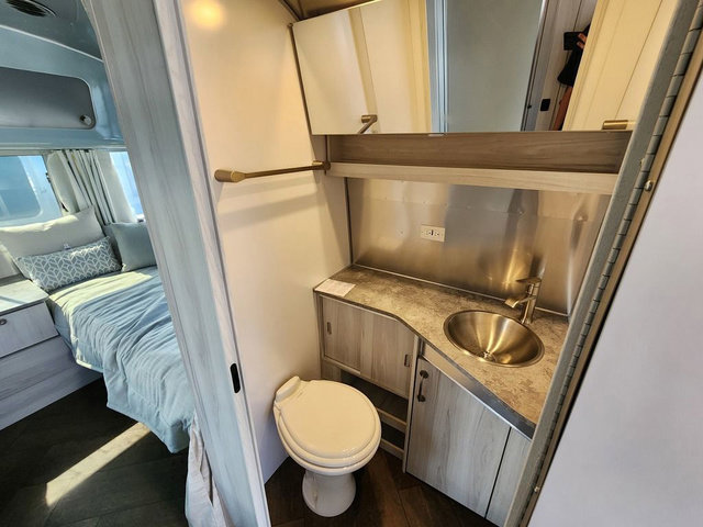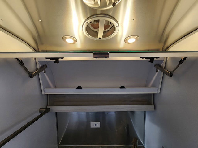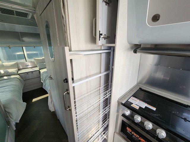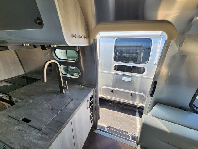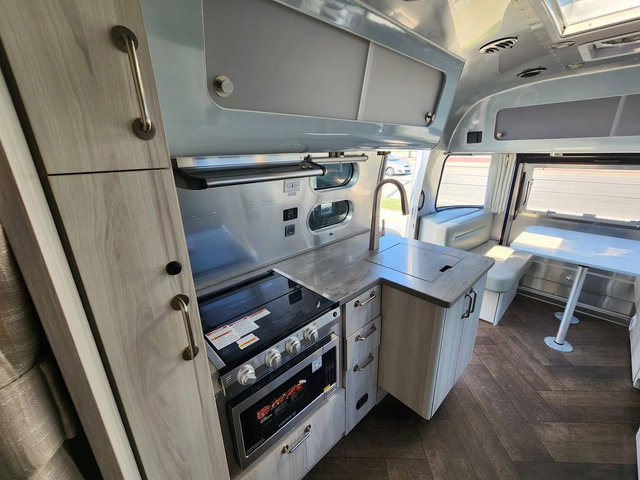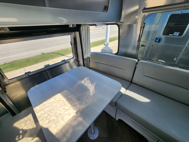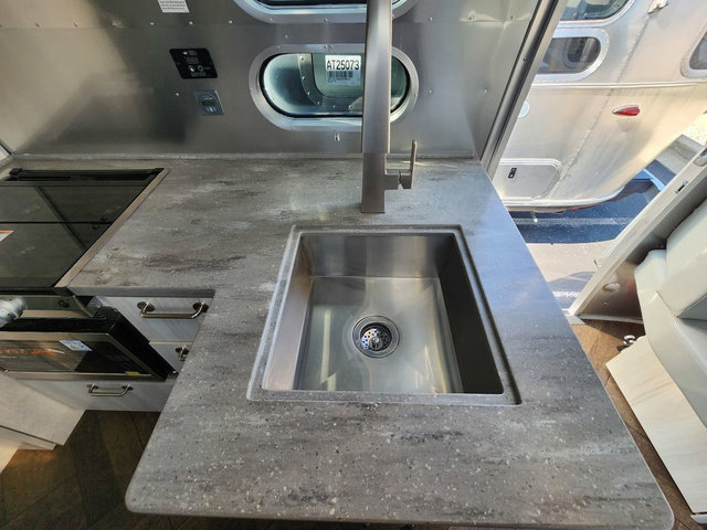 Every time you step foot into the Airstream International travel trailer, you will feel as if you are breathing in a breath of fresh air! The fresh coastal décor was inspired by the waterfront, and the stylish interior delivers a relaxing environment and comfortable luxury. The panoramic windows increase the amount of natural sunlight that streams through to the interior, but they also have blackout shades that you can close whenever you need a darkened room. The beautiful handcrafted marine-grade Lite-Ply laminated cabinetry is an attractive base for the overhead storage lockers that have sliding doors and LED lighting. The dimmable interior LED lighting will create the perfect amount of illumination for you as you spend time indoors. The exterior has excellent features as well with its enclosed aluminum insulated heated underbelly, unique front door key with heavy-duty deadbolt, optional solar package, solar front window protection, and exterior shower with hot and cold water.