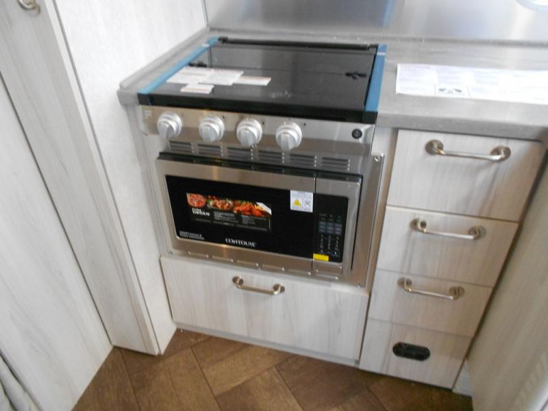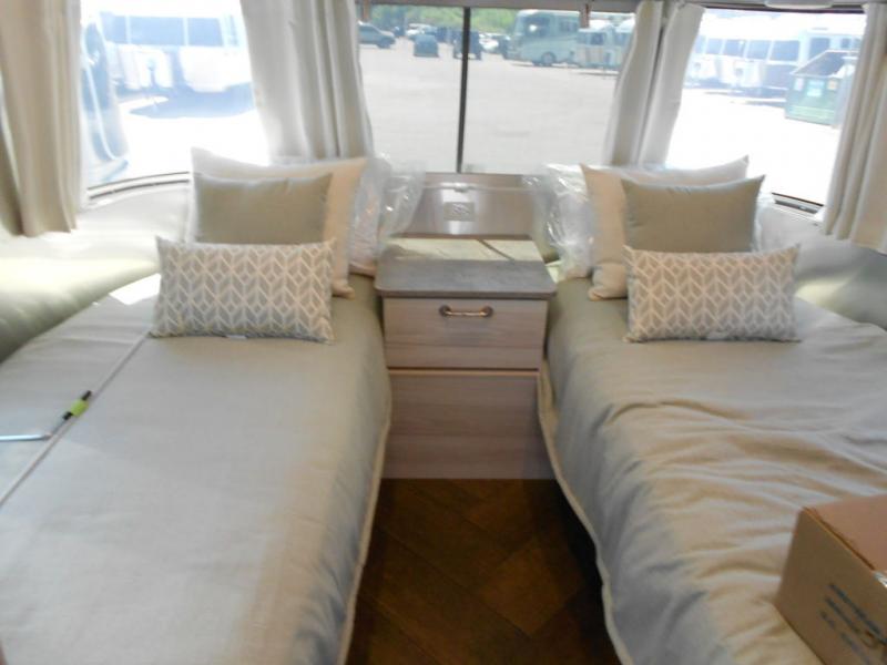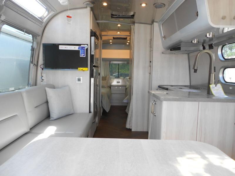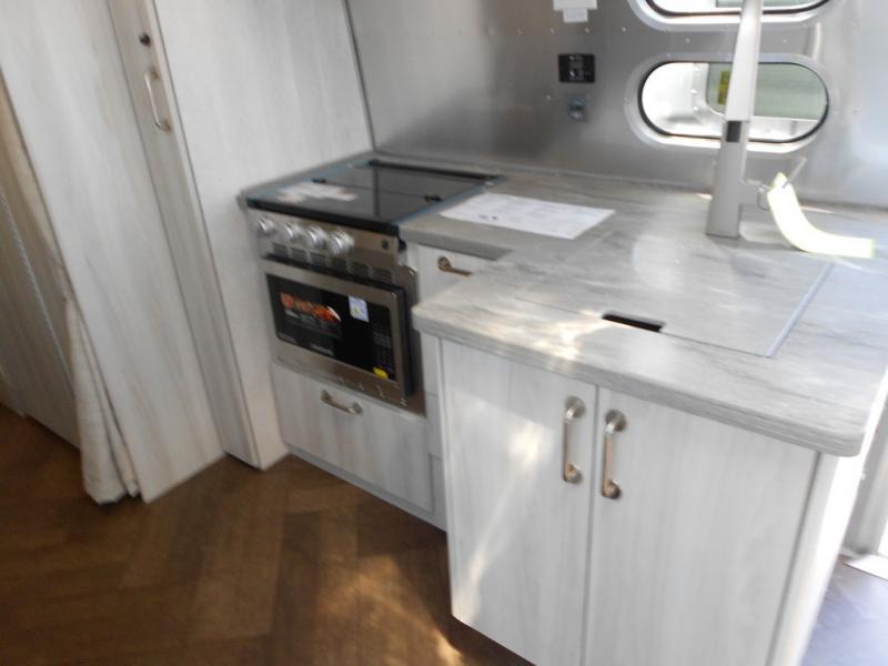 Every time you step foot into the Airstream International travel trailer, you will feel as if you are breathing in a breath of fresh air! The fresh coastal décor was inspired by the waterfront, and the stylish interior delivers a relaxing environment and comfortable luxury. The panoramic windows increase the amount of natural sunlight that streams through to the interior, but they also have blackout shades that you can close whenever you need a darkened room. The beautiful handcrafted marine-grade Lite-Ply laminated cabinetry is an attractive base for the overhead storage lockers that have sliding doors and LED lighting. The dimmable interior LED lighting will create the perfect amount of illumination for you as you spend time indoors. The exterior has excellent features as well with its enclosed aluminum insulated heated underbelly, unique front door key with heavy-duty deadbolt, optional solar package, solar front window protection, and exterior shower with hot and cold water.