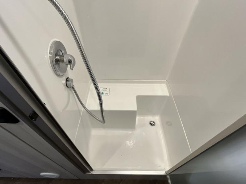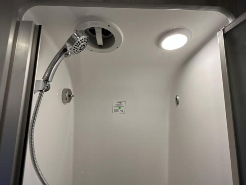 The rear bathroom offers a roomy shower, clean modern fixtures, and a layout that feels more like a residential spa than an RV bath. Whether you’re parked by the ocean, tucked into a forest campsite, or taking cross-country adventures, the Airstream International 25FB Twin brings a fresh, inviting, and stylish retreat everywhere you roam.