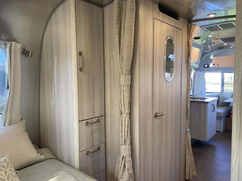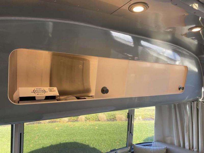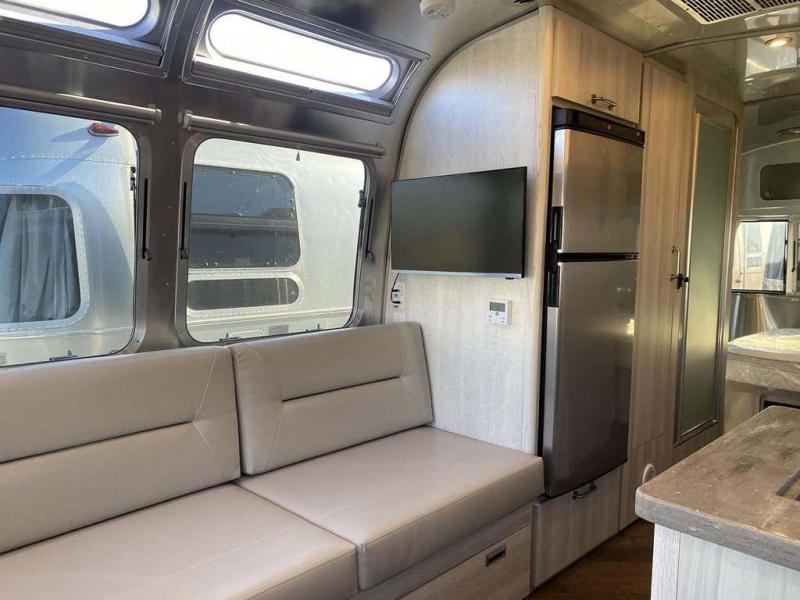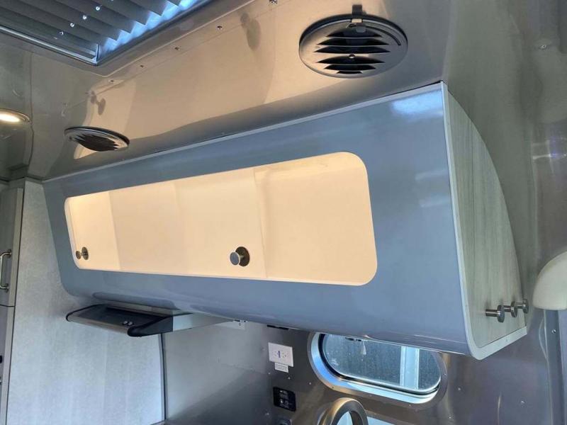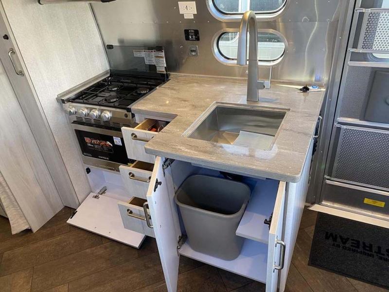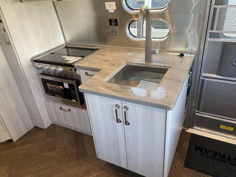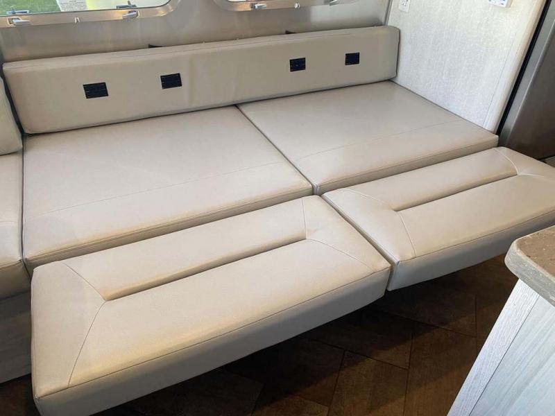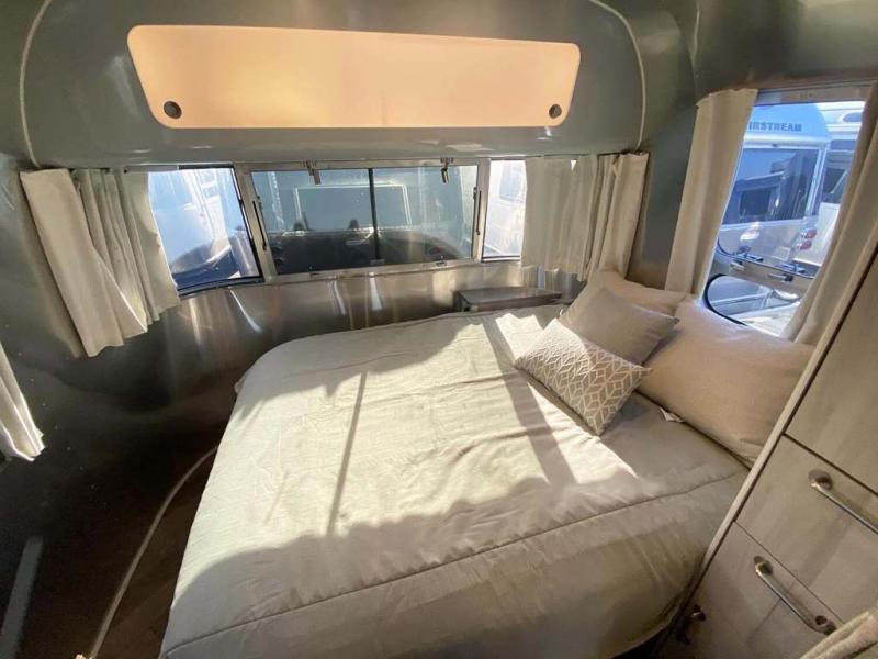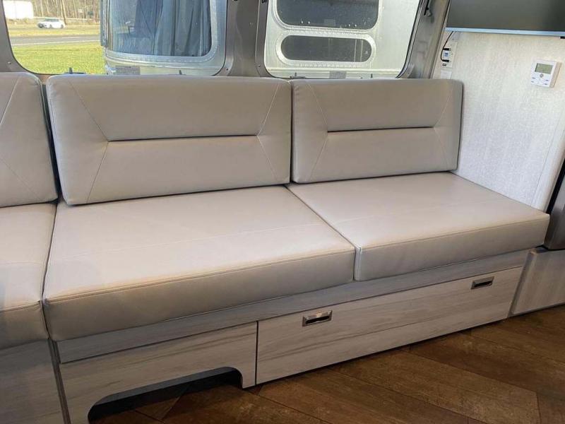 Every time you step foot into the Airstream International travel trailer, you will feel as if you are breathing in a breath of fresh air! The fresh coastal décor was inspired by the waterfront, and the stylish interior delivers a relaxing environment and comfortable luxury. The panoramic windows increase the amount of natural sunlight that streams through to the interior, but they also have blackout shades that you can close whenever you need a darkened room. The beautiful handcrafted marine-grade Lite-Ply laminated cabinetry is an attractive base for the overhead storage lockers that have sliding doors and LED lighting. The dimmable interior LED lighting will create the perfect amount of illumination for you as you spend time indoors. The exterior has excellent features as well with its enclosed aluminum insulated heated underbelly, unique front door key with heavy-duty deadbolt, optional solar package, solar front window protection, and exterior shower with hot and cold water.