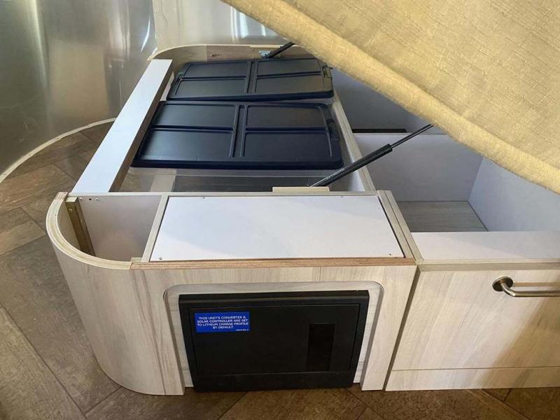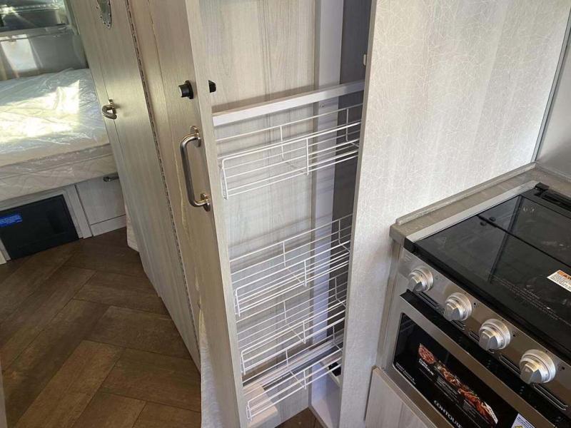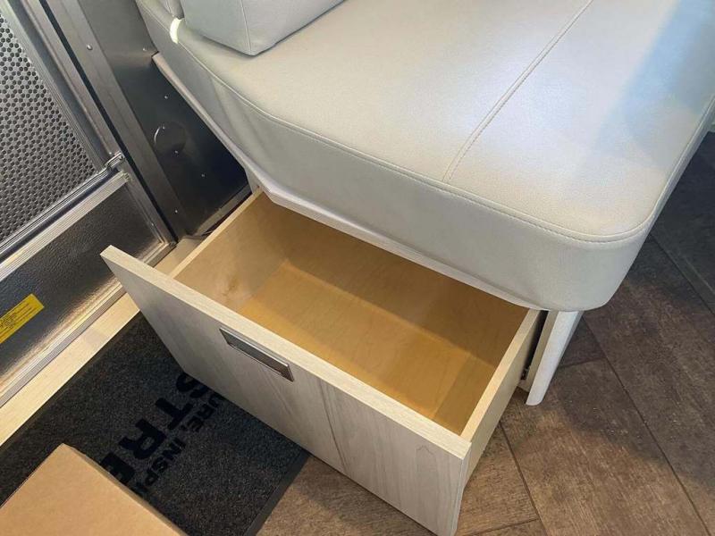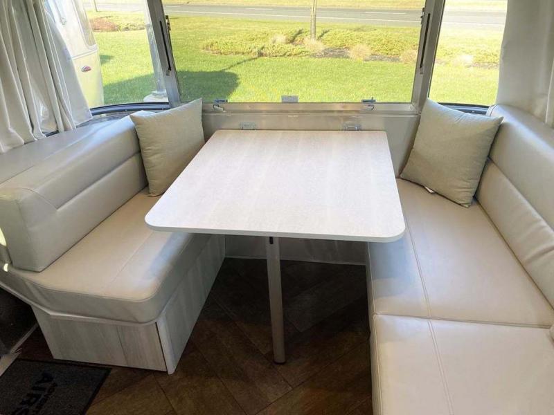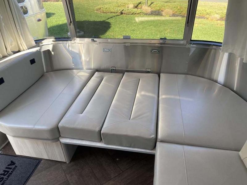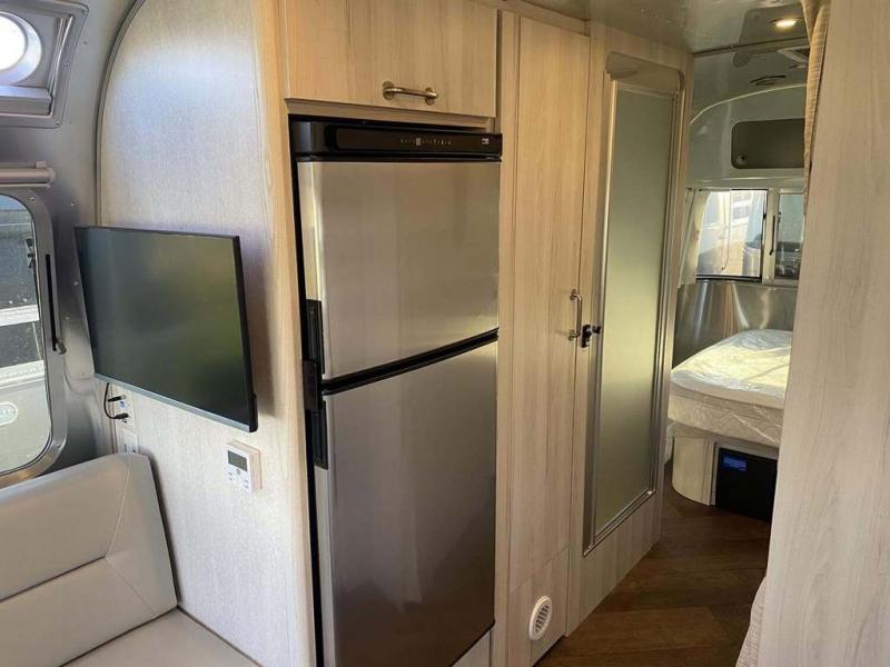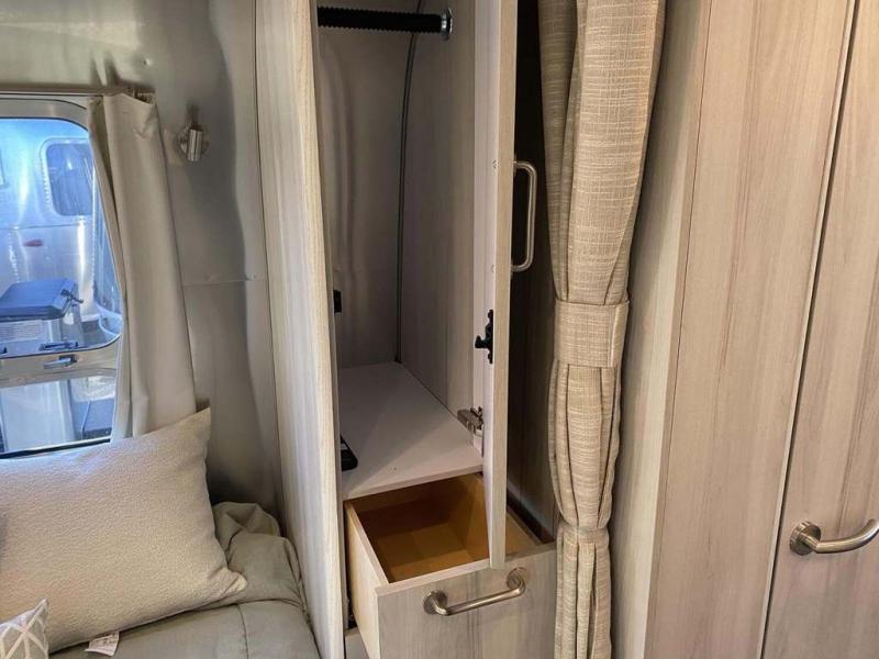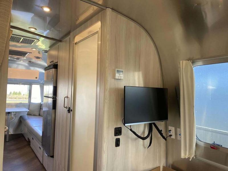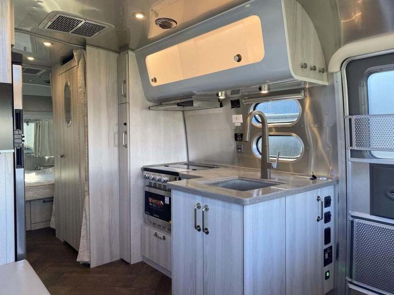 Every time you step foot into the Airstream International travel trailer, you will feel as if you are breathing in a breath of fresh air! The fresh coastal décor was inspired by the waterfront, and the stylish interior delivers a relaxing environment and comfortable luxury. The panoramic windows increase the amount of natural sunlight that streams through to the interior, but they also have blackout shades that you can close whenever you need a darkened room. The beautiful handcrafted marine-grade Lite-Ply laminated cabinetry is an attractive base for the overhead storage lockers that have sliding doors and LED lighting. The dimmable interior LED lighting will create the perfect amount of illumination for you as you spend time indoors. The exterior has excellent features as well with its enclosed aluminum insulated heated underbelly, unique front door key with heavy-duty deadbolt, optional solar package, solar front window protection, and exterior shower with hot and cold water.