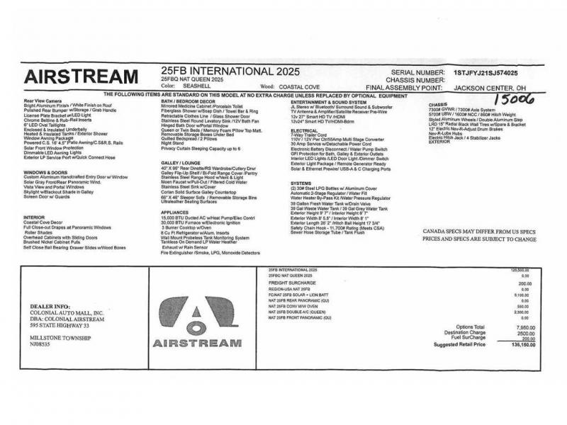 Airstream International travel trailer 25FB highlights: