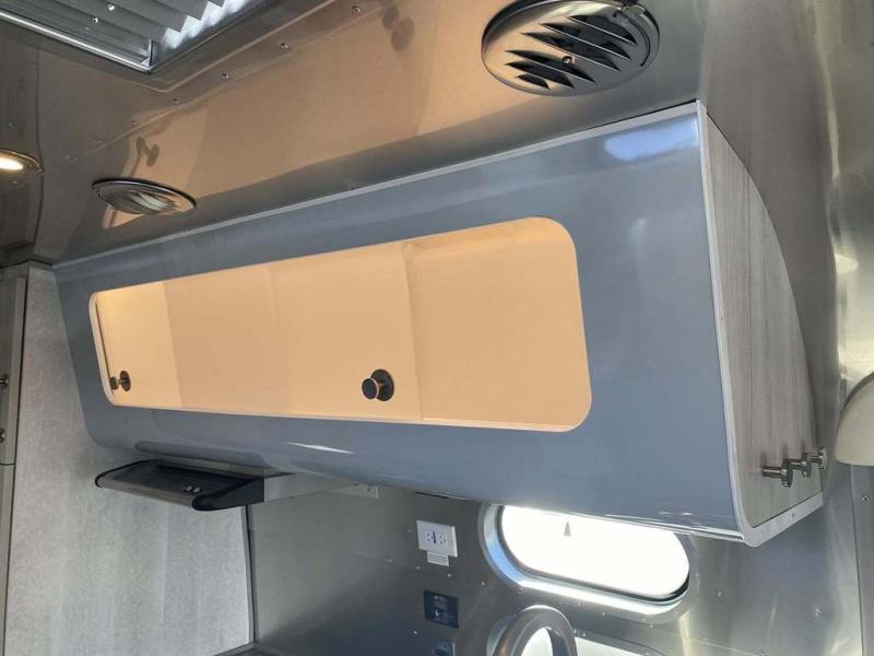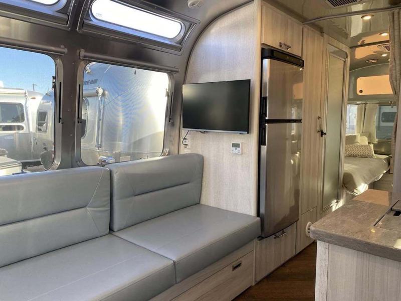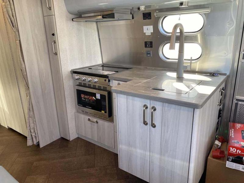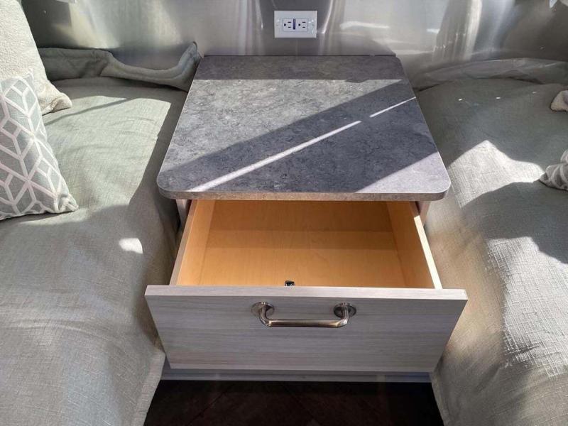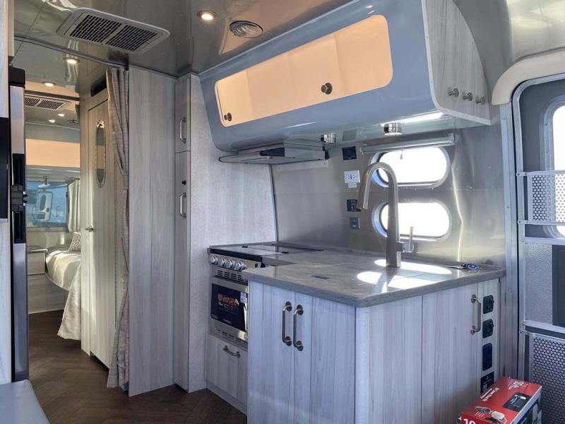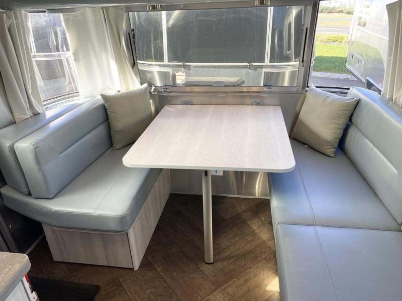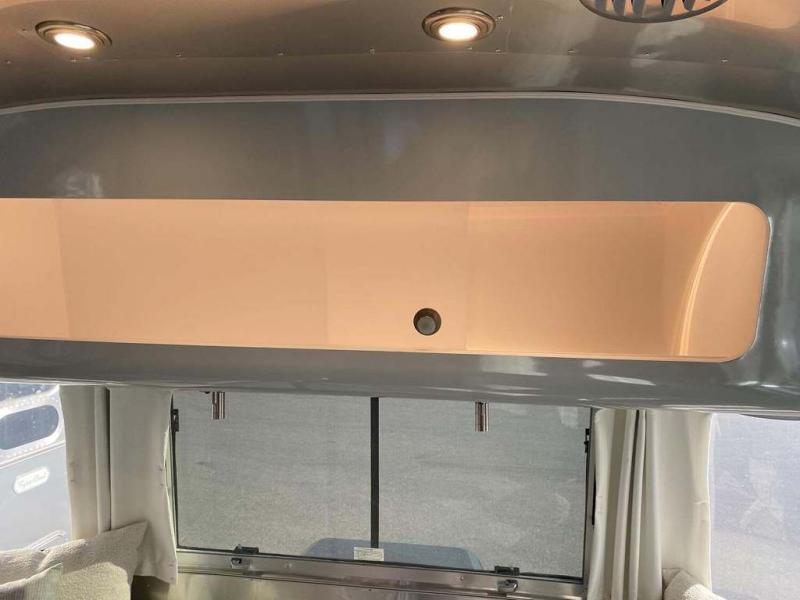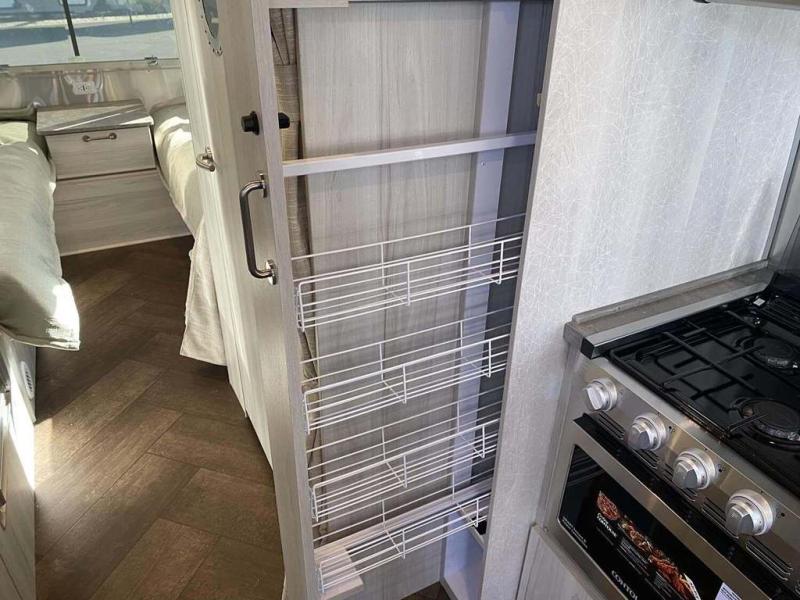 Every time you step foot into the Airstream International travel trailer, you will feel as if you are breathing in a breath of fresh air! The fresh coastal décor was inspired by the waterfront, and the stylish interior delivers a relaxing environment and comfortable luxury. The panoramic windows increase the amount of natural sunlight that streams through to the interior, but they also have blackout shades that you can close whenever you need a darkened room. The beautiful handcrafted marine-grade Lite-Ply laminated cabinetry is an attractive base for the overhead storage lockers that have sliding doors and LED lighting. The dimmable interior LED lighting will create the perfect amount of illumination for you as you spend time indoors. The exterior has excellent features as well with its enclosed aluminum insulated heated underbelly, unique front door key with heavy-duty deadbolt, optional solar package, solar front window protection, and exterior shower with hot and cold water.