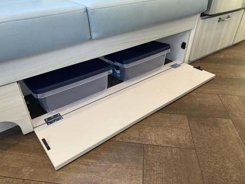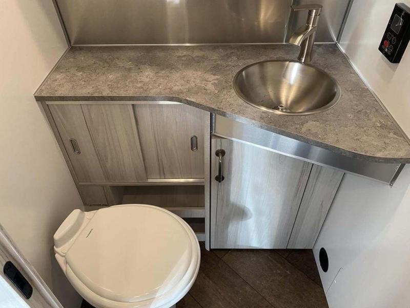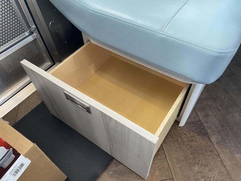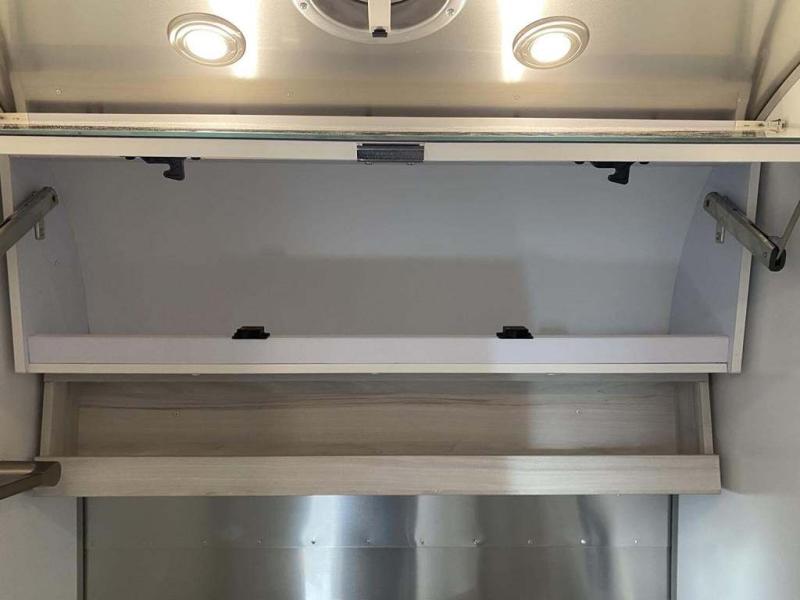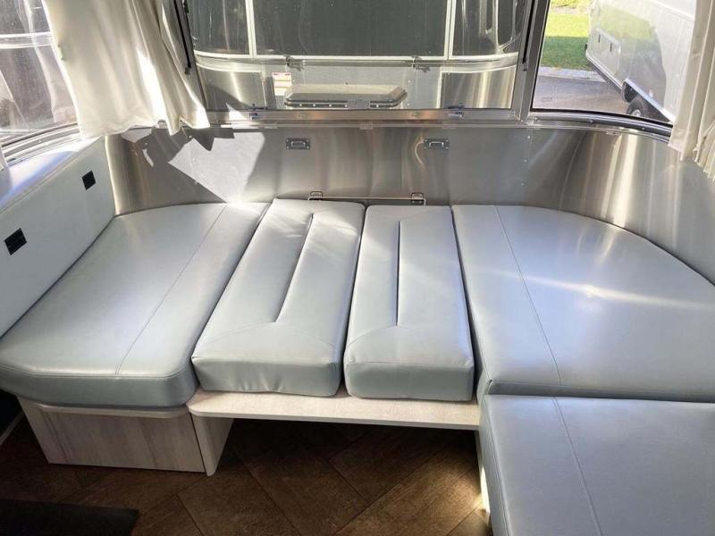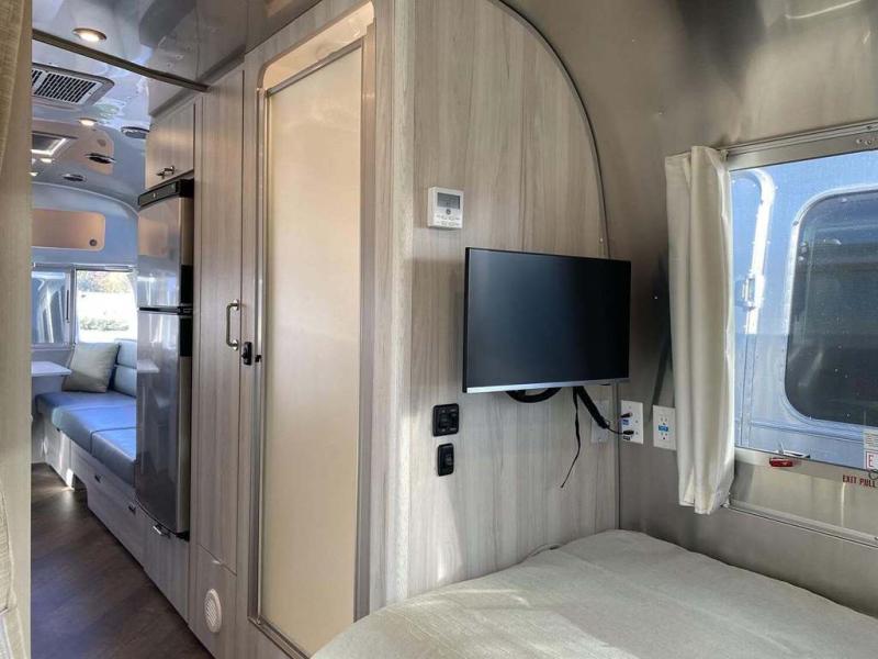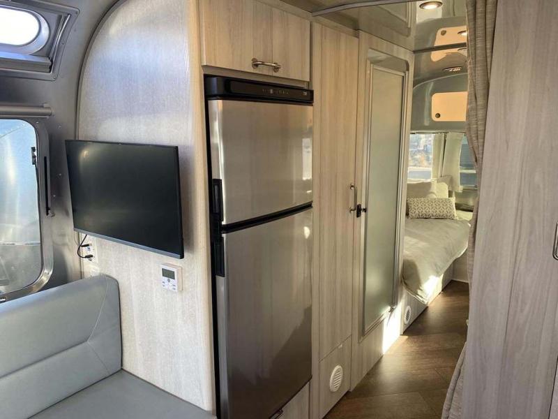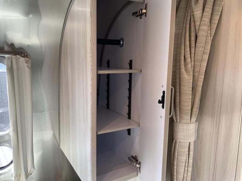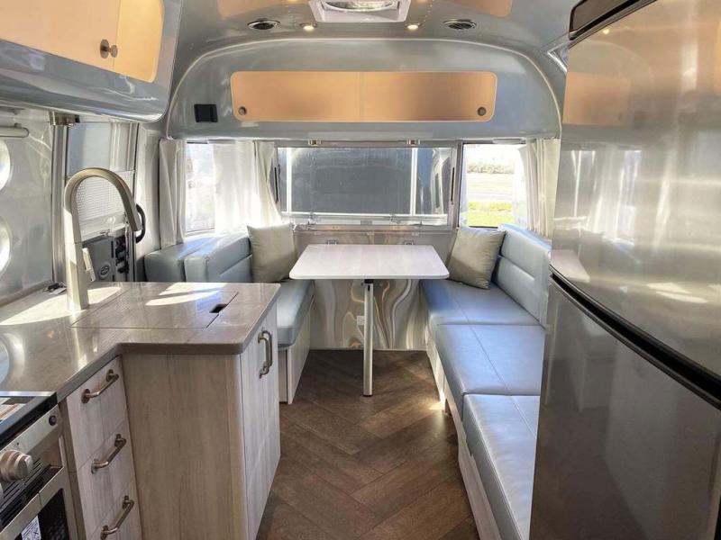 Every time you step foot into the Airstream International travel trailer, you will feel as if you are breathing in a breath of fresh air! The fresh coastal décor was inspired by the waterfront, and the stylish interior delivers a relaxing environment and comfortable luxury. The panoramic windows increase the amount of natural sunlight that streams through to the interior, but they also have blackout shades that you can close whenever you need a darkened room. The beautiful handcrafted marine-grade Lite-Ply laminated cabinetry is an attractive base for the overhead storage lockers that have sliding doors and LED lighting. The dimmable interior LED lighting will create the perfect amount of illumination for you as you spend time indoors. The exterior has excellent features as well with its enclosed aluminum insulated heated underbelly, unique front door key with heavy-duty deadbolt, optional solar package, solar front window protection, and exterior shower with hot and cold water.