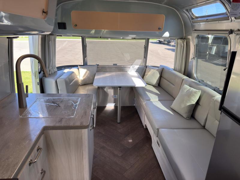 Every time you step foot into the Airstream International travel trailer, you will feel as if you are breathing in a breath of fresh air! The fresh coastal décor was inspired by the waterfront, and the stylish interior delivers a relaxing environment and comfortable luxury. The panoramic windows increase the amount of natural sunlight that streams through to the interior, but they also have blackout shades that you can close whenever you need a darkened room. The beautiful handcrafted marine-grade Lite-Ply laminated cabinetry is an attractive base for the overhead storage lockers that have sliding doors and LED lighting. The dimmable interior LED lighting will create the perfect amount of illumination for you as you spend time indoors. The exterior has excellent features as well with its enclosed aluminum insulated heated underbelly, unique front door key with heavy-duty deadbolt, optional solar package, solar front window protection, and exterior shower with hot and cold water.