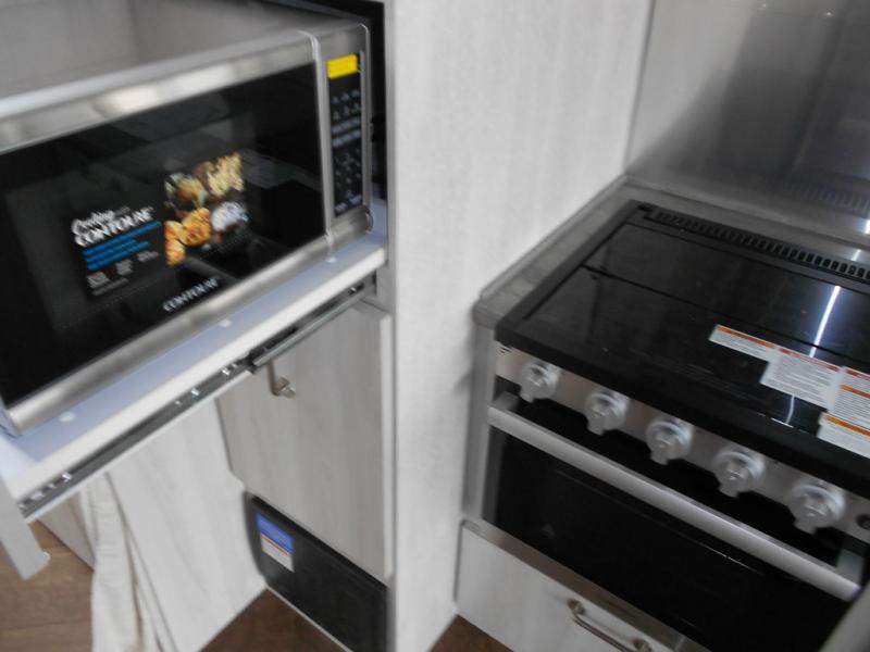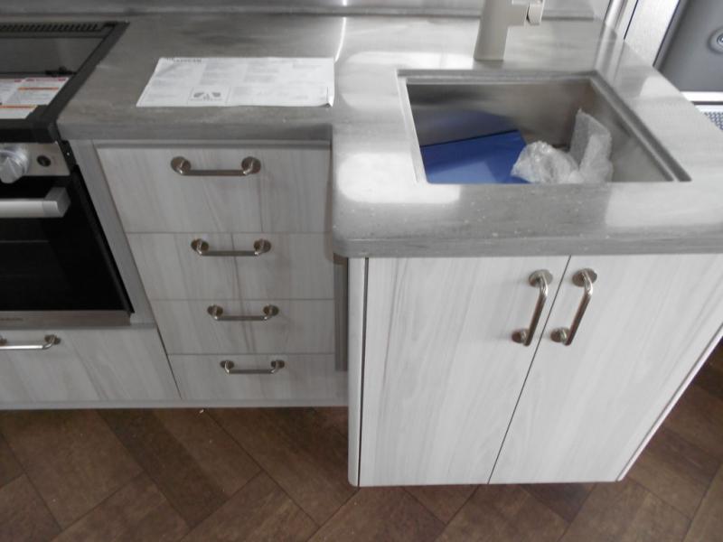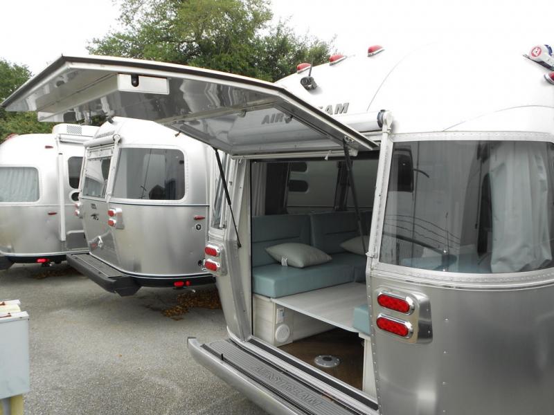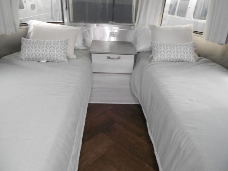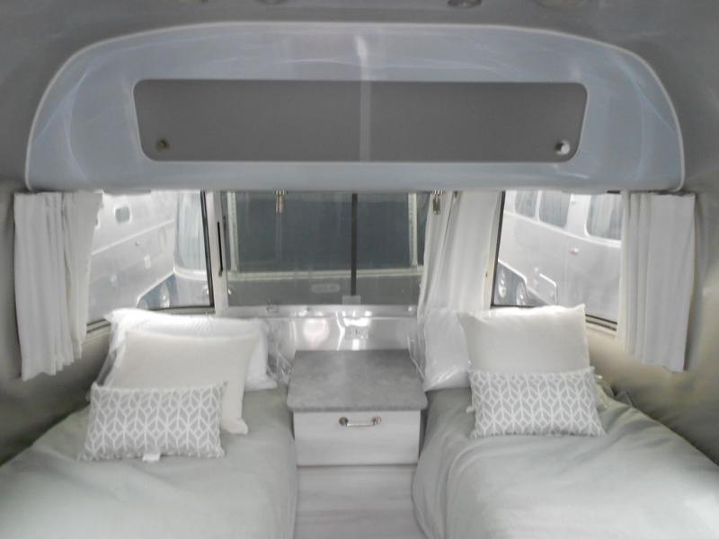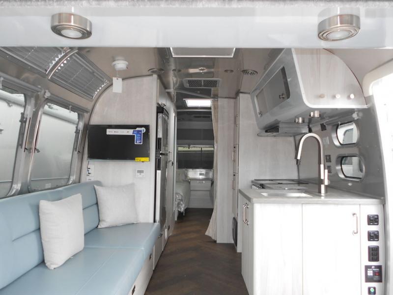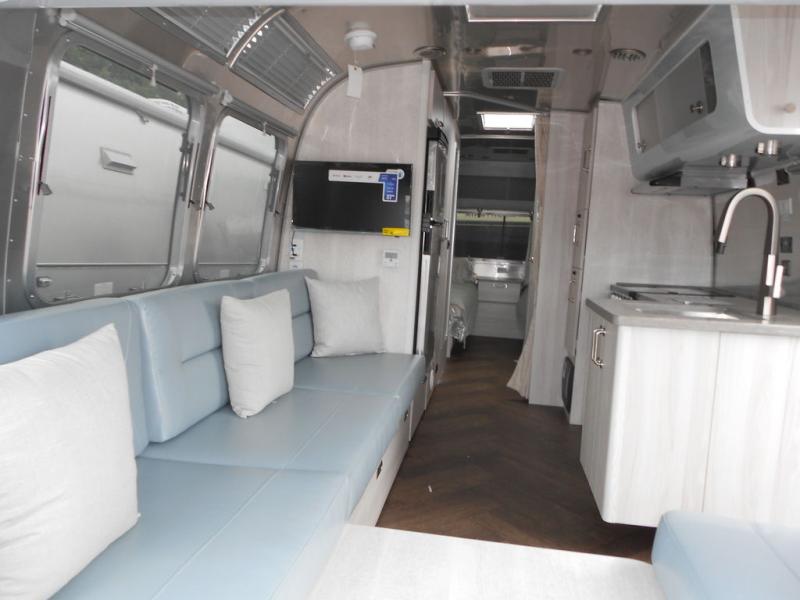 The first thing you will notice about this International travel trailer is the calming atmosphere! Airstream has done a wonderful job of creating a tranquil sanctuary for you to take your vacations in. The kitchen has a three-burner cooktop, stainless steel sink, 8 cu. ft. refrigerator, and microwave so that you can create new and exciting dishes each time you are away. This trailer also has excellent storage space with the overhead storage lockers, the wardrobe with hanging bar, the under-bed storage, and the exterior storage compartment. You can also find great entertainment as you spend your time in this trailer because the two 12V DC Smart TVs will allow you to watch a movie on the Blu-Ray DVD player. Some available options for this model include the optional twin beds in place of the queen bed and the optional rear hatch with a front bunk. If the front bunk option is chosen, it will replace the overhead storage in the bedroom!