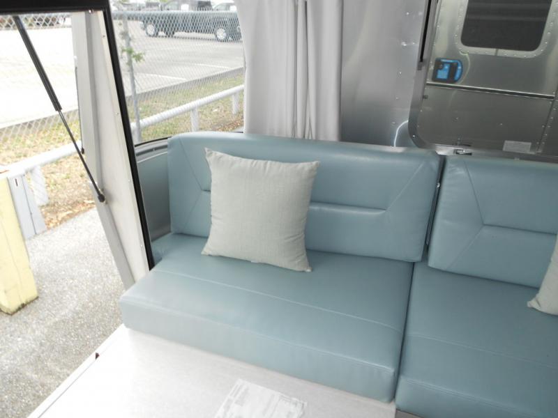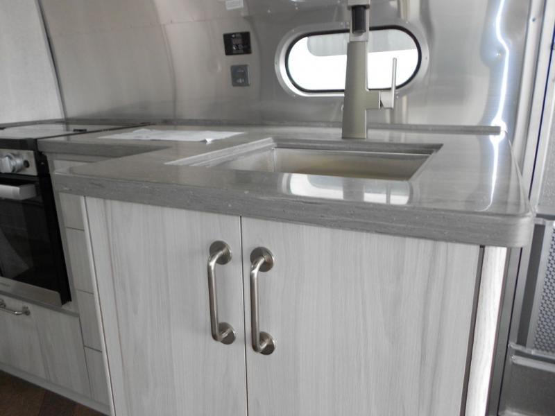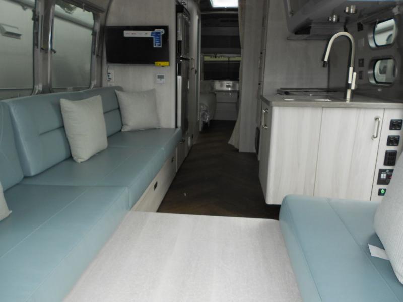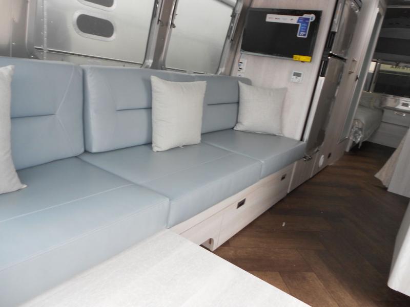 Every time you step foot into the Airstream International travel trailer, you will feel as if you are breathing in a breath of fresh air! The fresh coastal décor was inspired by the waterfront, and the stylish interior delivers a relaxing environment and comfortable luxury. The panoramic windows increase the amount of natural sunlight that streams through to the interior, but they also have blackout shades that you can close whenever you need a darkened room. The beautiful handcrafted marine-grade Lite-Ply laminated cabinetry is an attractive base for the overhead storage lockers that have sliding doors and LED lighting. The dimmable interior LED lighting will create the perfect amount of illumination for you as you spend time indoors. The exterior has excellent features as well with its enclosed aluminum insulated heated underbelly, unique front door key with heavy-duty deadbolt, optional solar package, solar front window protection, and exterior shower with hot and cold water.