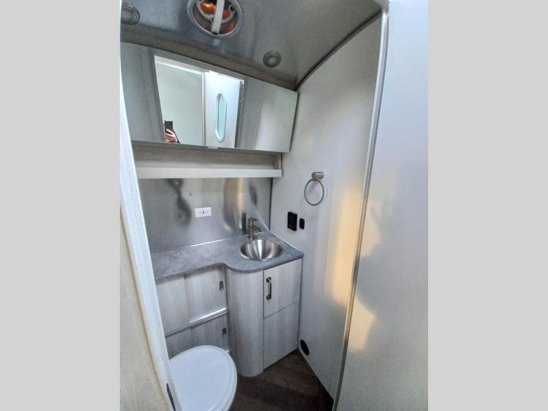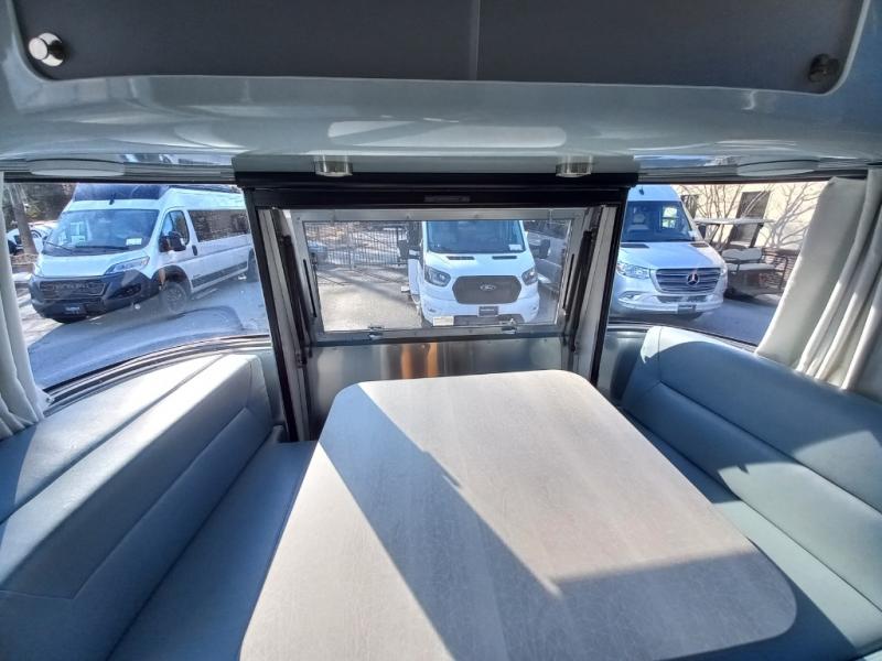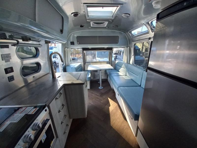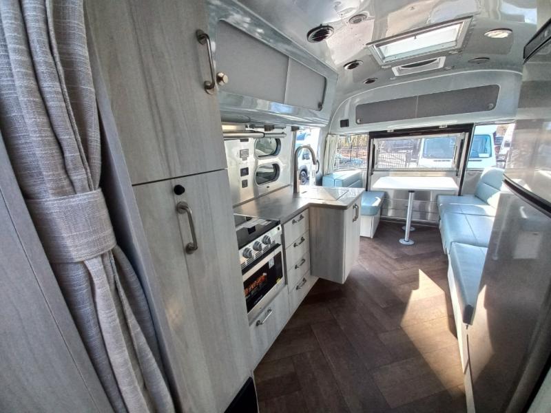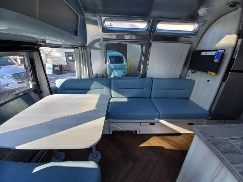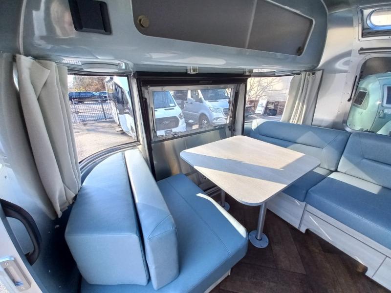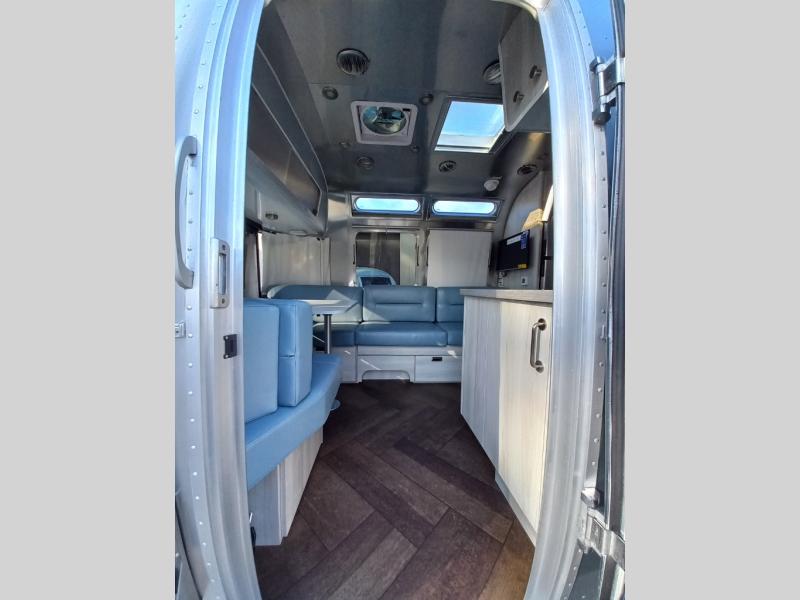 Every time you step foot into the Airstream International travel trailer, you will feel as if you are breathing in a breath of fresh air! The fresh coastal décor was inspired by the waterfront, and the stylish interior delivers a relaxing environment and comfortable luxury. The panoramic windows increase the amount of natural sunlight that streams through to the interior, but they also have blackout shades that you can close whenever you need a darkened room. The beautiful handcrafted Italian Lite-Ply laminated cabinetry is an attractive base for the overhead storage lockers that have sliding doors and LED lighting. The dimmable interior LED lighting will create the perfect amount of illumination for you as you spend time indoors. The exterior has excellent features as well with its enclosed aluminum insulated heated underbelly, unique front door key with heavy-duty deadbolt, optional solar package, solar front window protection, and exterior shower with hot and cold water.