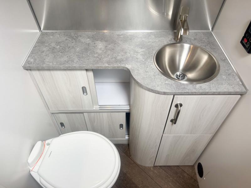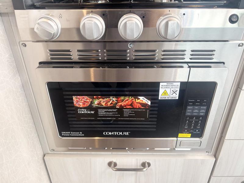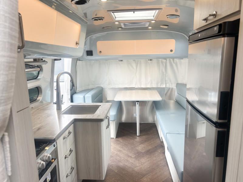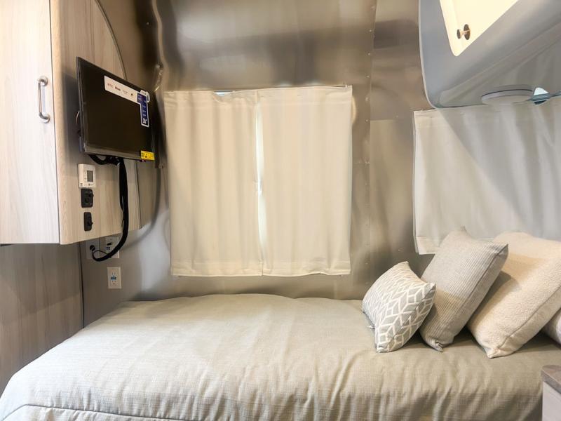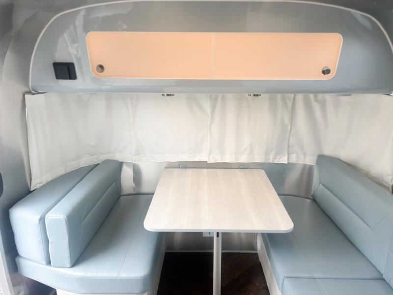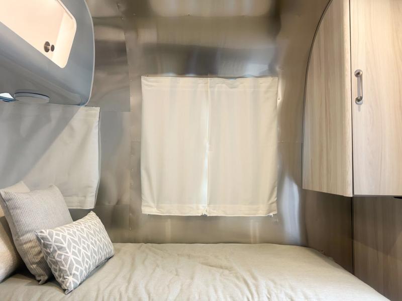 Every time you step foot into the Airstream International travel trailer, you will feel as if you are breathing in a breath of fresh air! The fresh coastal décor was inspired by the waterfront, and the stylish interior delivers a relaxing environment and comfortable luxury. The panoramic windows increase the amount of natural sunlight that streams through to the interior, but they also have blackout shades that you can close whenever you need a darkened room. The beautiful handcrafted marine-grade Lite-Ply laminated cabinetry is an attractive base for the overhead storage lockers that have sliding doors and LED lighting. The dimmable interior LED lighting will create the perfect amount of illumination for you as you spend time indoors. The exterior has excellent features as well with its enclosed aluminum insulated heated underbelly, unique front door key with heavy-duty deadbolt, optional solar package, solar front window protection, and exterior shower with hot and cold water.