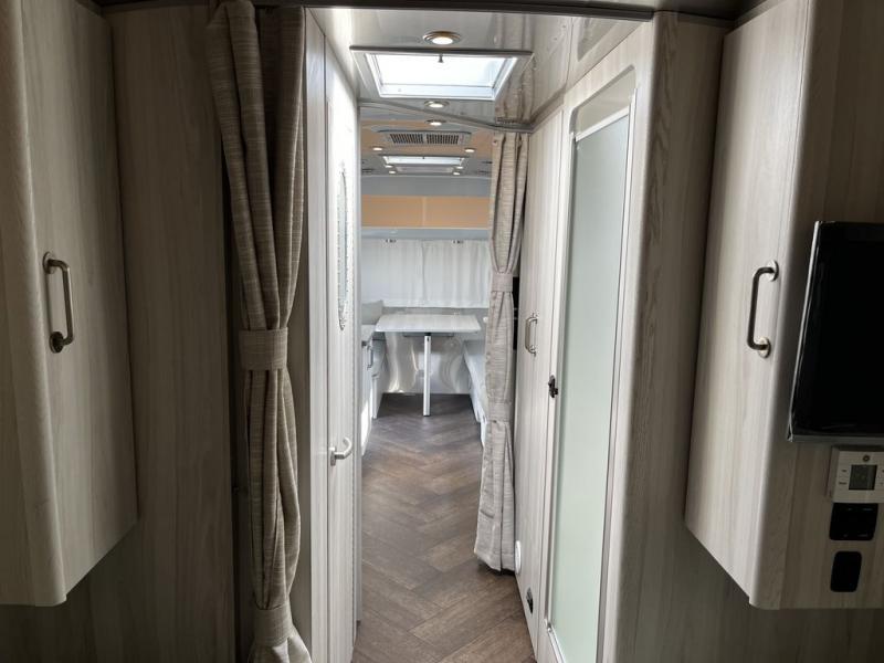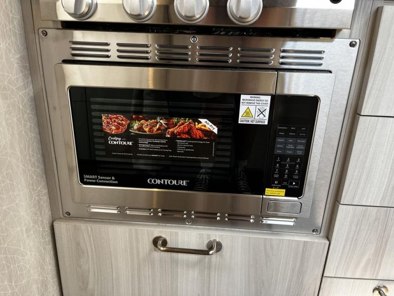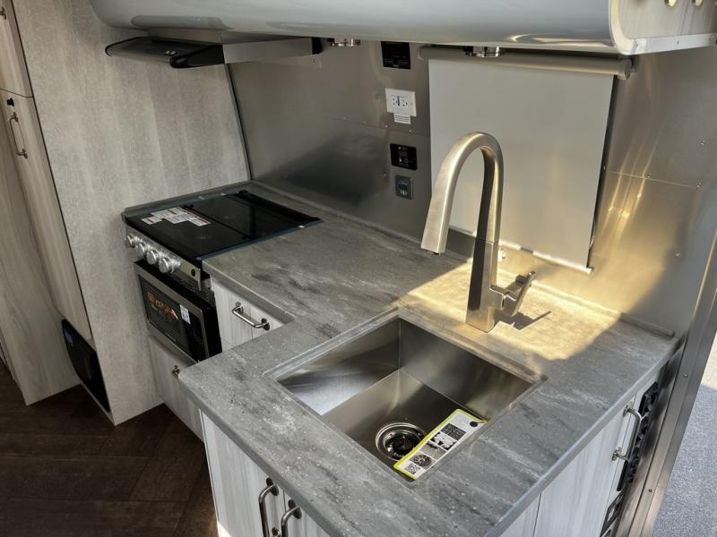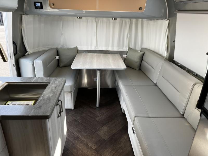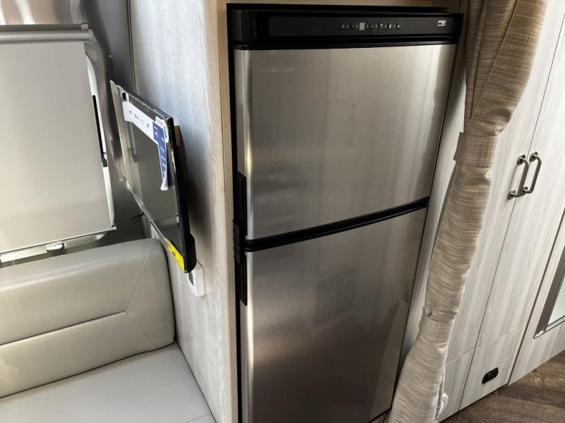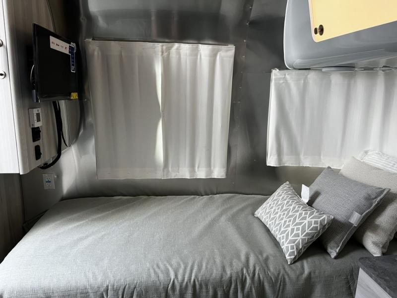 Every time you step foot into the Airstream International travel trailer, you will feel as if you are breathing in a breath of fresh air! The fresh coastal décor was inspired by the waterfront, and the stylish interior delivers a relaxing environment and comfortable luxury. The panoramic windows increase the amount of natural sunlight that streams through to the interior, but they also have blackout shades that you can close whenever you need a darkened room. The beautiful handcrafted marine-grade Lite-Ply laminated cabinetry is an attractive base for the overhead storage lockers that have sliding doors and LED lighting. The dimmable interior LED lighting will create the perfect amount of illumination for you as you spend time indoors. The exterior has excellent features as well with its enclosed aluminum insulated heated underbelly, unique front door key with heavy-duty deadbolt, optional solar package, solar front window protection, and exterior shower with hot and cold water.