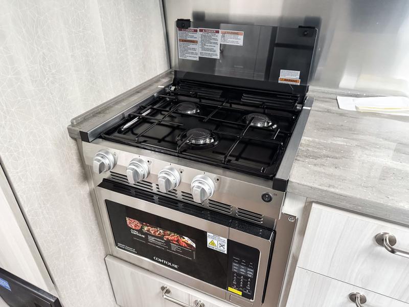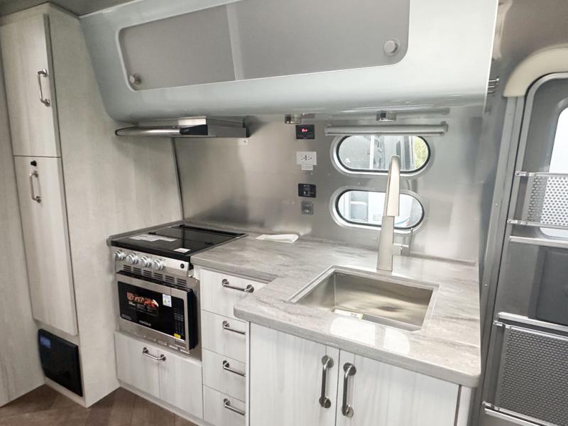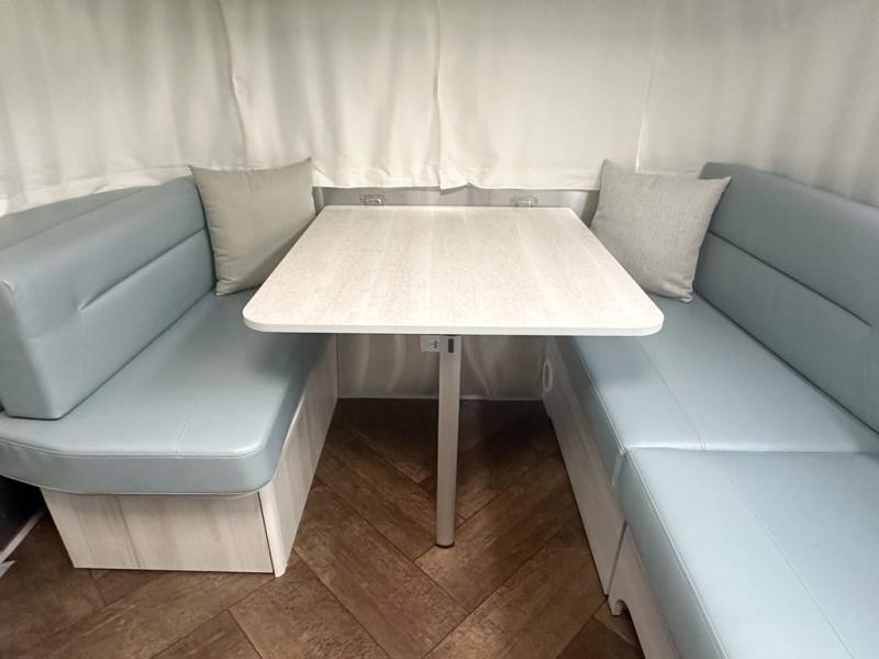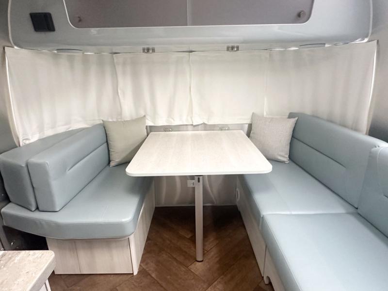 Every time you step foot into the Airstream International travel trailer, you will feel as if you are breathing in a breath of fresh air! The fresh coastal décor was inspired by the waterfront, and the stylish interior delivers a relaxing environment and comfortable luxury. The panoramic windows increase the amount of natural sunlight that streams through to the interior, but they also have blackout shades that you can close whenever you need a darkened room. The beautiful handcrafted marine-grade Lite-Ply laminated cabinetry is an attractive base for the overhead storage lockers that have sliding doors and LED lighting. The dimmable interior LED lighting will create the perfect amount of illumination for you as you spend time indoors. The exterior has excellent features as well with its enclosed aluminum insulated heated underbelly, unique front door key with heavy-duty deadbolt, optional solar package, solar front window protection, and exterior shower with hot and cold water.