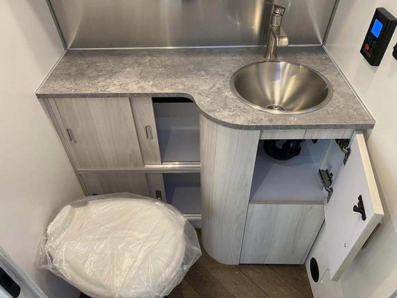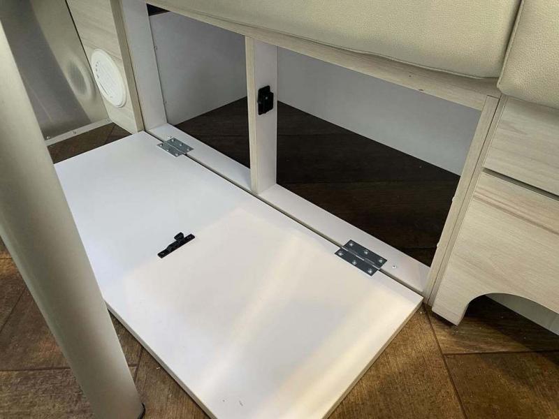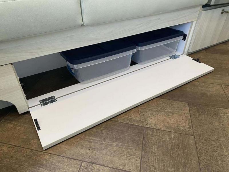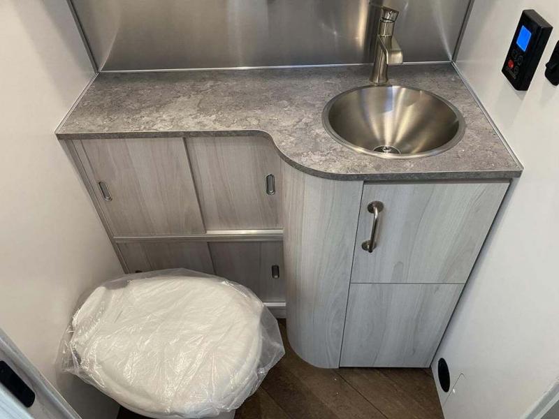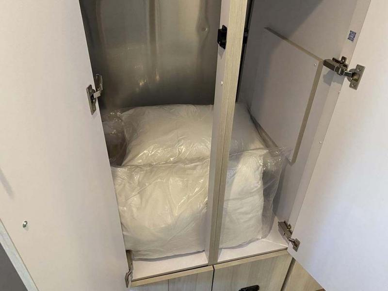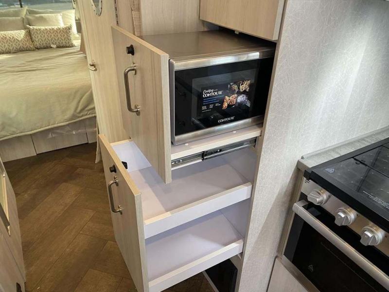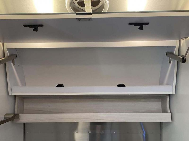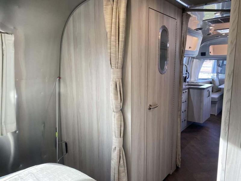 The first thing you will notice about this International travel trailer is the calming atmosphere! Airstream has done a wonderful job of creating a tranquil sanctuary for you to take your vacations in. The kitchen has a three-burner cooktop, stainless steel sink, 8 cu. ft. refrigerator, and microwave so that you can create new and exciting dishes each time you are away. This trailer also has excellent storage space with the overhead storage lockers, the wardrobe with hanging bar, the under-bed storage, and the exterior storage compartment. You can also find great entertainment as you spend your time in this trailer because the two 12V DC Smart TVs will allow you to watch a movie on the Blu-Ray DVD player. Some available options for this model include the optional twin beds in place of the queen bed and the optional rear hatch with a front bunk. If the front bunk option is chosen, it will replace the overhead storage in the bedroom!