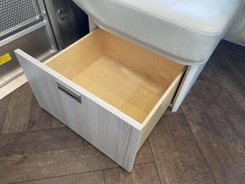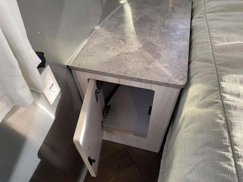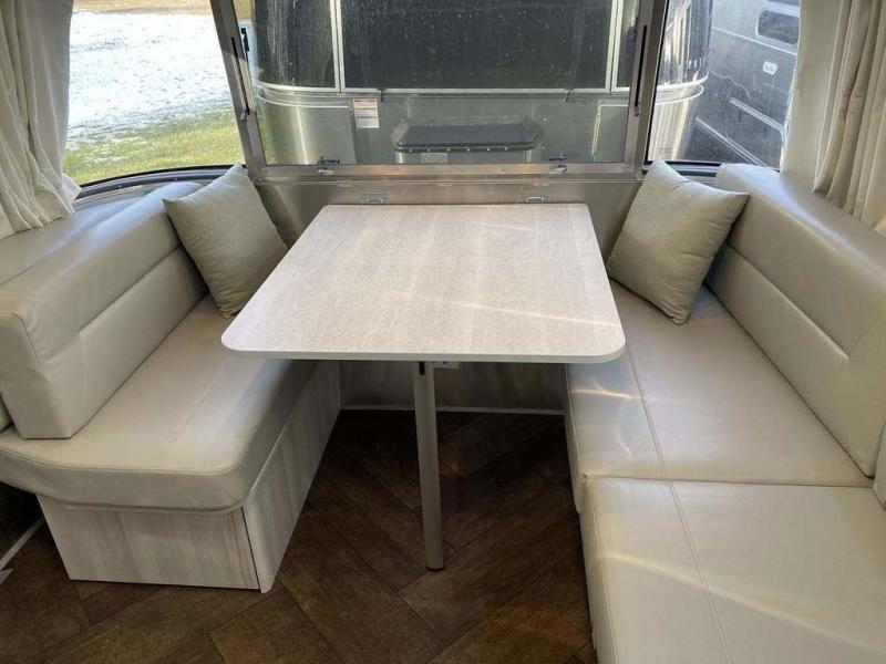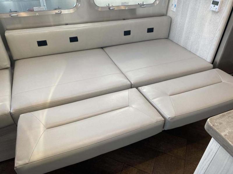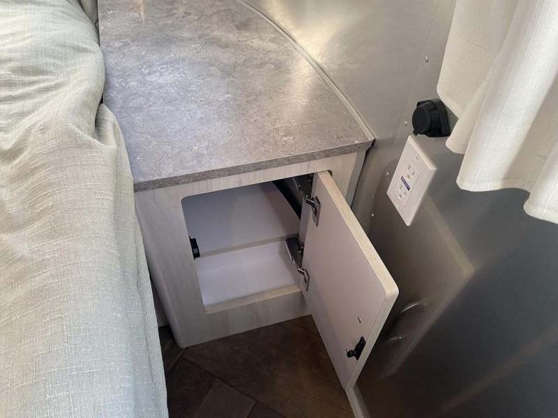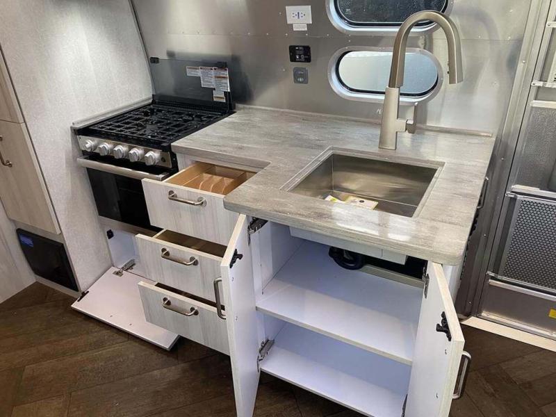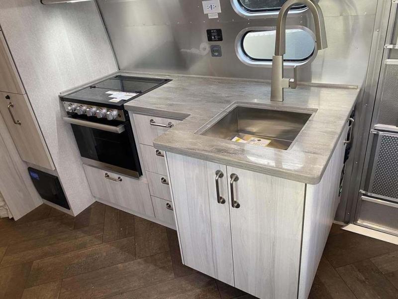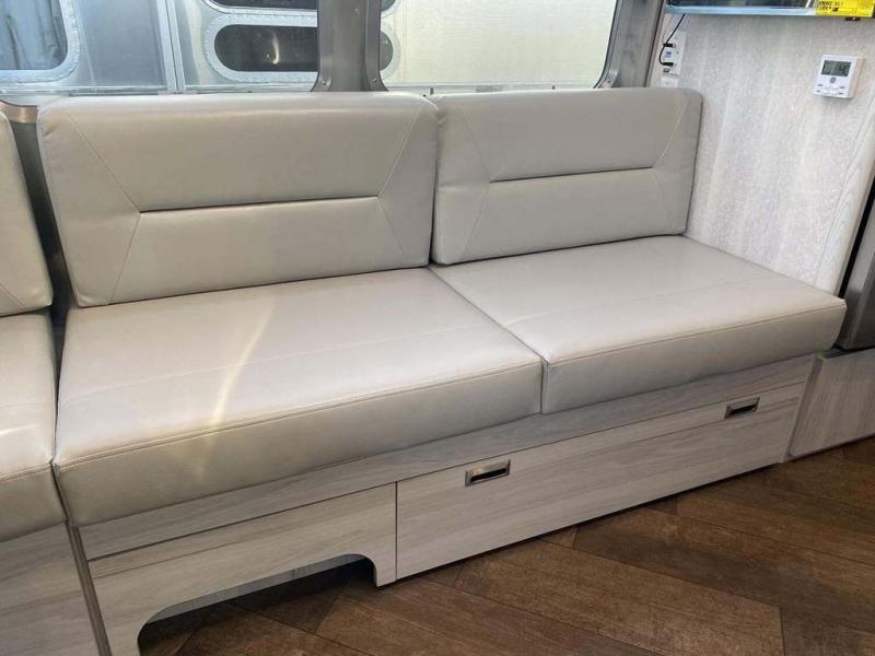 Every time you step foot into the Airstream International travel trailer, you will feel as if you are breathing in a breath of fresh air! The fresh coastal décor was inspired by the waterfront, and the stylish interior delivers a relaxing environment and comfortable luxury. The panoramic windows increase the amount of natural sunlight that streams through to the interior, but they also have blackout shades that you can close whenever you need a darkened room. The beautiful handcrafted marine-grade Lite-Ply laminated cabinetry is an attractive base for the overhead storage lockers that have sliding doors and LED lighting. The dimmable interior LED lighting will create the perfect amount of illumination for you as you spend time indoors. The exterior has excellent features as well with its enclosed aluminum insulated heated underbelly, unique front door key with heavy-duty deadbolt, optional solar package, solar front window protection, and exterior shower with hot and cold water.
