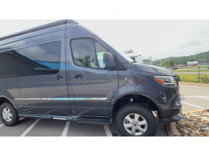 The Interstate 19 Class B diesel motorhome by Airstream is as nimble as it is luxurious. The Mercedes-Benz safety features will provide you with a peace of mind as you travel with precious cargo, and the smaller size will make it easier to drive and park. A Mercedes-Benz Sprinter 2500 chassis comes standard, but you can choose the 4-wheel drive or all-wheel drive option if you plan to travel tougher terrain. There are two 100 Ah deep cycle lithium batteries and a 2.5 kW LP generator for all your power needs, plus unlimited hot water provided by the Truma Combi hot water heater. Head inside to find Ultraleather seating, power window shades, Airstream's signature aluminum ceiling and trim, plus a Corian countertop in the galley for added luxury. You will also love the interior decor options, including the Tommy Bahama special edition that features tropical graphics and tan seating for that island-style feel!