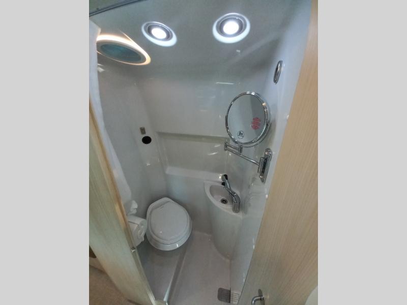 Your adventures are made complete in this 19' coach that can sleep two comfortably. When you arrive at the campground, you can prepare lunch on the two burner cooktop with an integrated cover, or use the convection microwave. There is also a slide out pantry and a 3.2 cu. ft. 12V refrigerator and freezer for your food storage. The rear sofa/bed and side seats convert to a lay-flat bed, giving you the largest best in its class, plus there is a convenient wet bath on board to stay clean throughout your trip.
