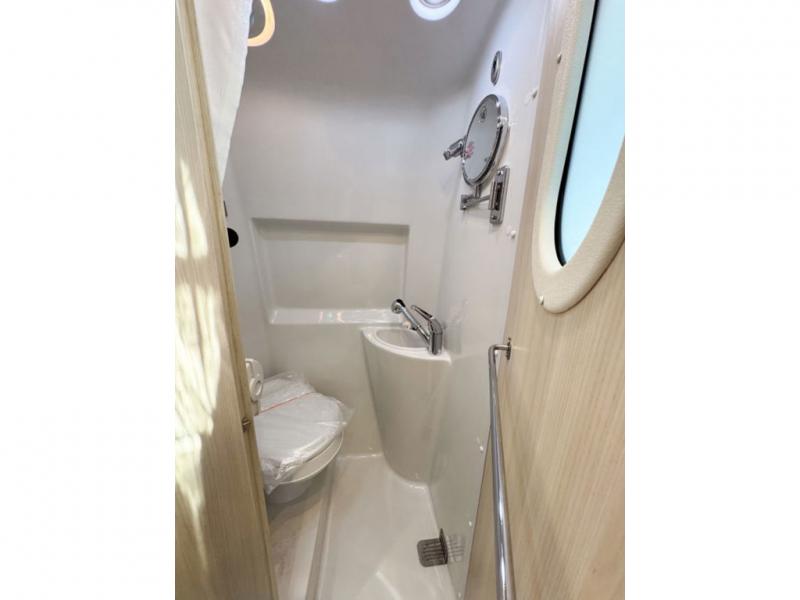 Your adventures are made complete in this 19' coach that can sleep two comfortably. When you arrive at the campground, you can prepare lunch on the two burner cooktop with an integrated cover, or use the convection microwave. There is also a slide out pantry and a 3.2 cu. ft. 12V refrigerator and freezer for your food storage. The rear sofa/bed and side seats convert to a lay-flat bed, giving you the largest best in its class, plus there is a convenient wet bath on board to stay clean throughout your trip.