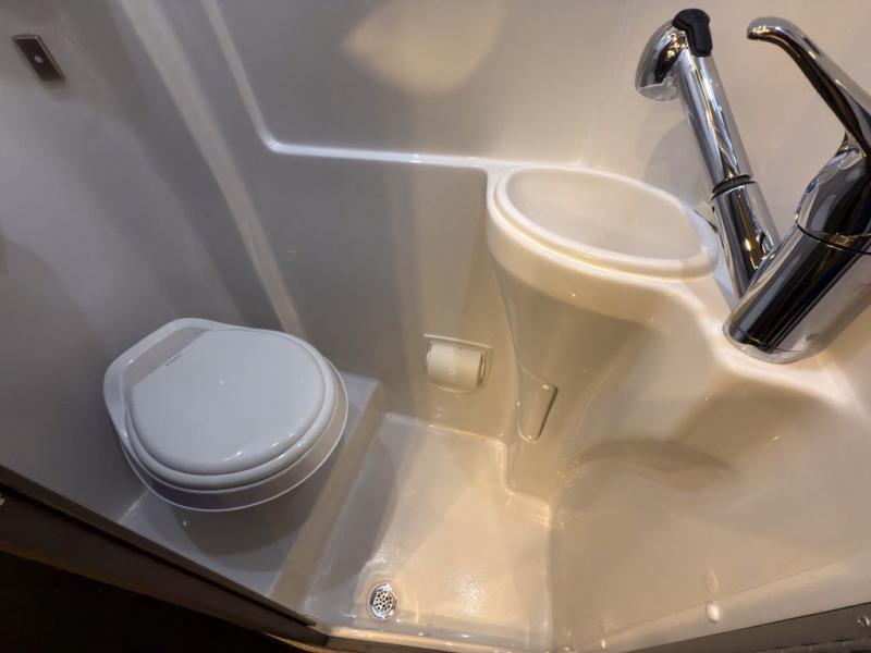 This motorhome is ready to take everyone to each destination in comfort and style! You can even stay overnight without booking a hotel room and stay squeaky clean with a wet bath that has a one-piece shower, a riveted aluminum porthole door, a toilet, a sink with an articulated mirror, a towel rack, and even a retractable clothesline. Keep your bellies full with the two-burner cooktop, the drawer-style microwave and a 3.1 cu. ft. refrigerator under the Corian counter, plus there is a flip-up countertop to make it easier for meal prepping. The rear power sofa is not only great for sitting on during the day, but also for sleeping on at night once it is folded down to turn the entire rear of the unit into a singular sleeping space. In between the two captain's chairs and the two side seats is a removable table to play games and eat meals!