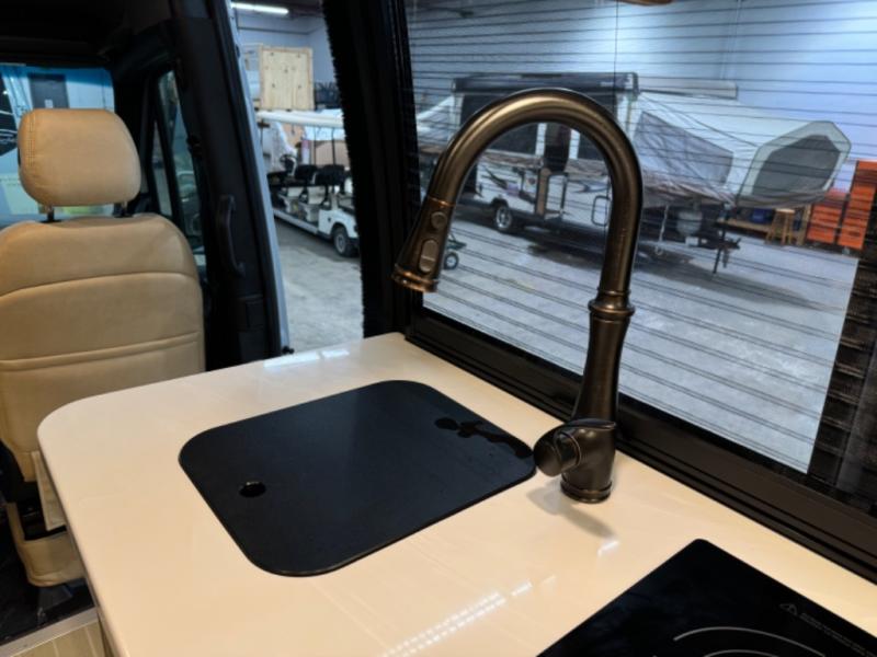 The Airstream Interstate 24GT Class B diesel motorhome offers comfort, performance and safety with the Mercedes-Benz Sprinter 3500 extended chassis, the 3.0L V6 turbo diesel engine, BlueTEC SCR technology, and Adaptive Electronic Stability Program. Also included: active blind spot, brake, driver attention, rear cross traffic assist, plus more safety features giving you peace of mind on the road. More standout features include the power-sliding side door for ease in entering and exiting with a built-in screen door to allow airflow when parked, storage cubbies with USB charging ports, and a super comfortable Ultraleather sofa that offers both seating and sleeping space. You will also appreciate the touch screen/touch pad electronic controls with an Energy Management system, and a 400 watt solar system for off-grid camping