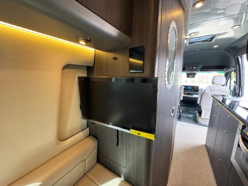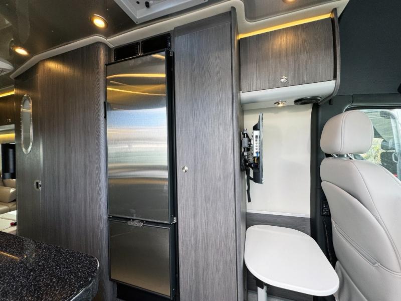 The Airstream Interstate 24GT Class B diesel motorhome offers comfort, performance and safety with the Mercedes-Benz Sprinter 3500 extended chassis, the 3.0L V6 turbo diesel engine, BlueTEC SCR technology, and Adaptive Electronic Stability Program. Also included: active blind spot, brake, driver attention, rear cross traffic assist, plus more safety features giving you peace of mind on the road. More standout features include the power-sliding side door for ease in entering and exiting with a built-in screen door to allow airflow when parked, storage cubbies with USB charging ports, and a super comfortable Ultraleather sofa that offers both seating and sleeping space. You will also appreciate the touch screen/touch pad electronic controls with an Energy Management system, and a 400 watt solar system for off-grid camping