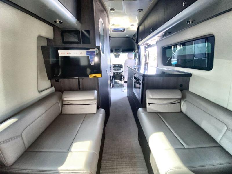 The Airstream Interstate 24GT Class B diesel motorhome offers comfort, performance and safety with the Mercedes-Benz Sprinter 3500 extended chassis, the 3.0L V6 turbo diesel engine, BlueTEC SCR technology, and Adaptive Electronic Stability Program. Also included: active blind spot, brake, driver attention, rear cross traffic assist, plus more safety features giving you peace of mind on the road. More standout features include the power-sliding side door for ease in entering and exiting with a built-in screen door to allow airflow when parked, storage cubbies with USB charging ports, and a super comfortable Ultraleather sofa that offers both seating and sleeping space. You will also appreciate the touch screen/touch pad electronic controls with an Energy Management system, and a 400 watt solar system for off-grid camping