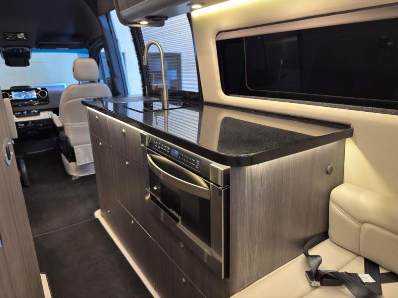 The Airstream Interstate 24GT Class B diesel motorhome offers comfort, performance and safety with the Mercedes-Benz Sprinter 3500 extended chassis, the 3.0L V6 turbo diesel engine, BlueTEC SCR technology, and Adaptive Electronic Stability Program. Also included: active blind spot, brake, driver attention, rear cross traffic assist, plus more safety features giving you peace of mind on the road. More standout features include the power-sliding side door for ease in entering and exiting with a built-in screen door to allow airflow when parked, storage cubbies with USB charging ports, and a super comfortable Ultraleather sofa that offers both seating and sleeping space. You will also appreciate the touch screen/touch pad electronic controls with an Energy Management system, and a 400 watt solar system for off-grid camping